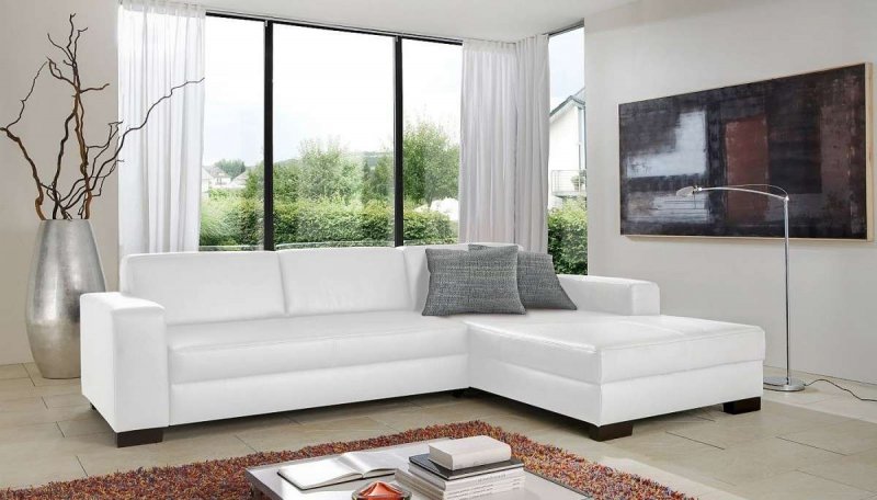 Диванное покрытие наиболее практично выбирать кожаное, но очищать его придется ежедневно – пыль забивается в естественные неровности, поры кожи и покрытие уже не выглядит таким белоснежным. Сильные загрязнения удаляются при помощи специальных моющих средств для кожаной мебели. Свежие пятна убирают губкой, смоченной в мыльной воде.