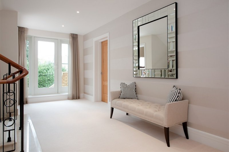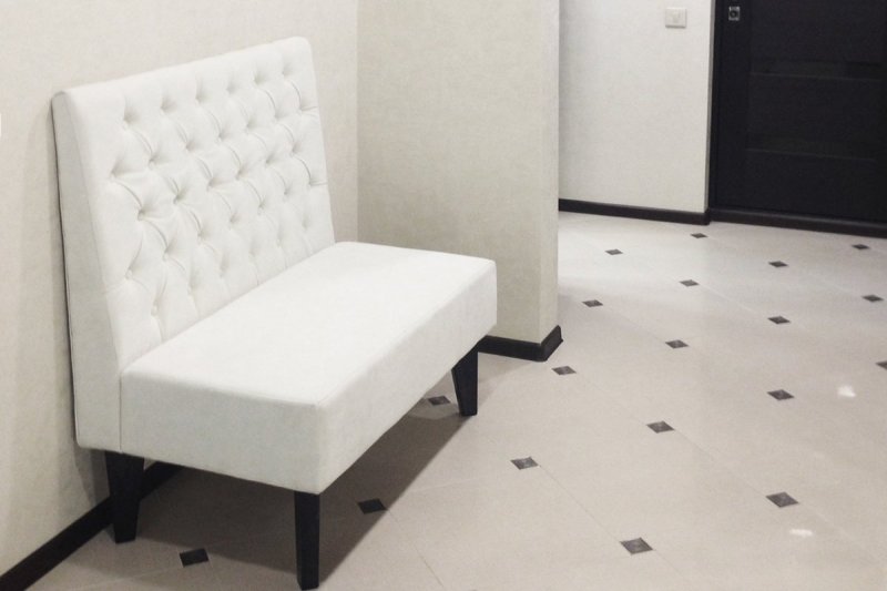Во многих современных квартирах имеется достаточно обширная прихожая, позволяющая разместить в ней небольшой, но полноценный диванчик. Раскладной здесь не нужен, подойдет прямой, размещаемый вдоль одной из стен или угловой – используемый в качестве зонирующего элемента. В узком помещении важно оставить достаточно места для свободного перемещения – если в квартире проживает один-два человека, то достаточно будет 80-100 см, при количестве жильцов свыше трех ширина прохода составляет минимум 120 см. С улицы в прихожую носится достаточное количество грязи, пыли, особенно при наличии детей, домашних животных. Поэтому желательно использовать съемные, легко стирающиеся мебельные чехлы.