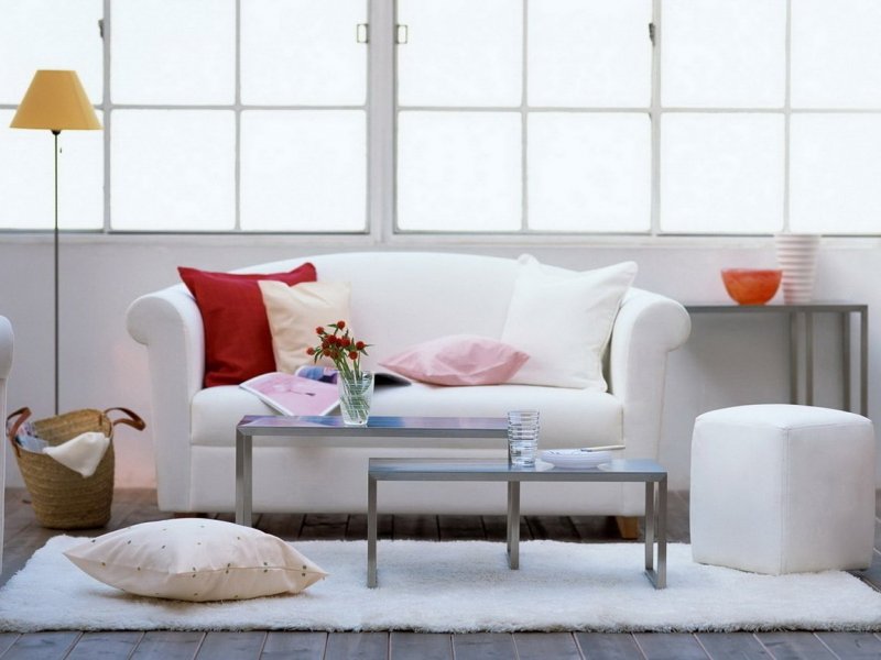 Данные колеры имеются не только в составе конструкции дивана, но и в окружающей обстановке – коврах, креслах, гардинах и др. Не рекомендуется сочетать белый с чрезмерно светлыми тонами: