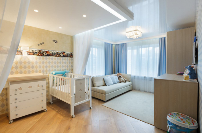 Необходимо тщательно продумать, где будет размещена люстра, поскольку после монтажа натяжного потолка изменить ее расположение будет проблематично