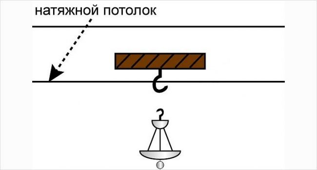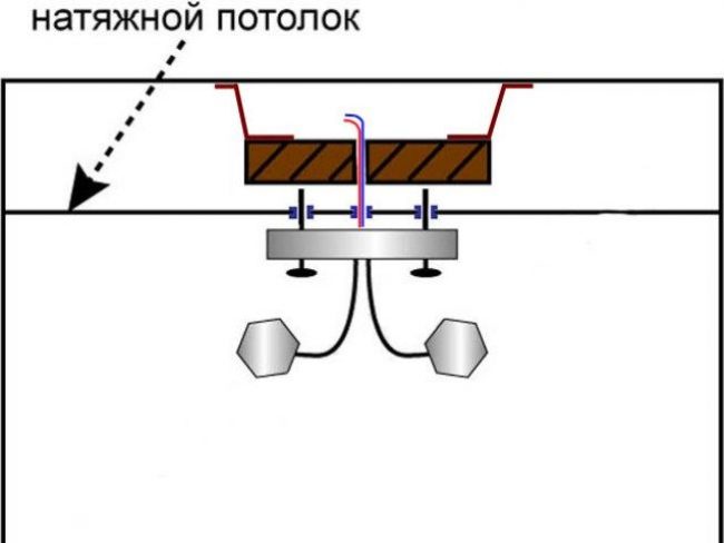 Схема установки люстры на натяжной потолок с помощью монтажной планки