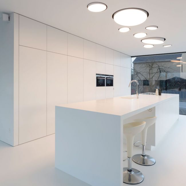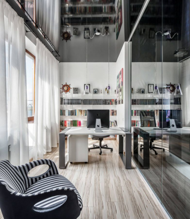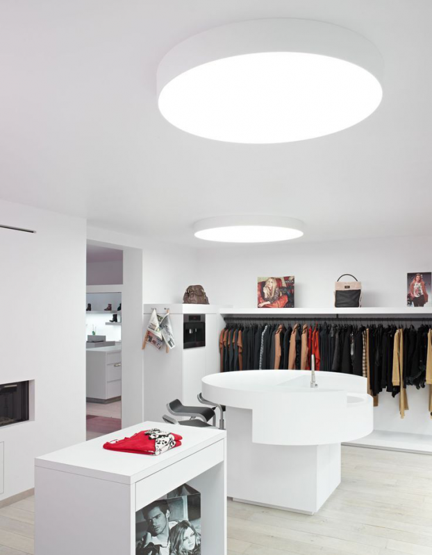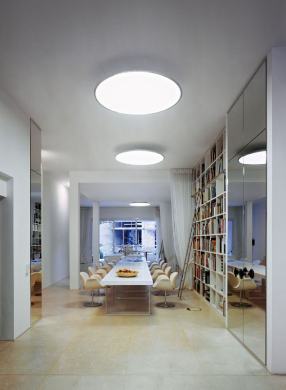 Лампы в сочетании с отражающим натяжным потолком дают потрясающий визуальный эффект