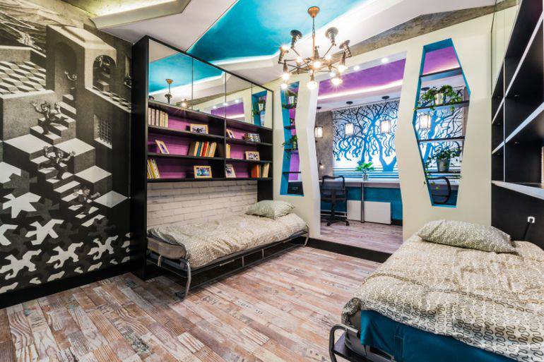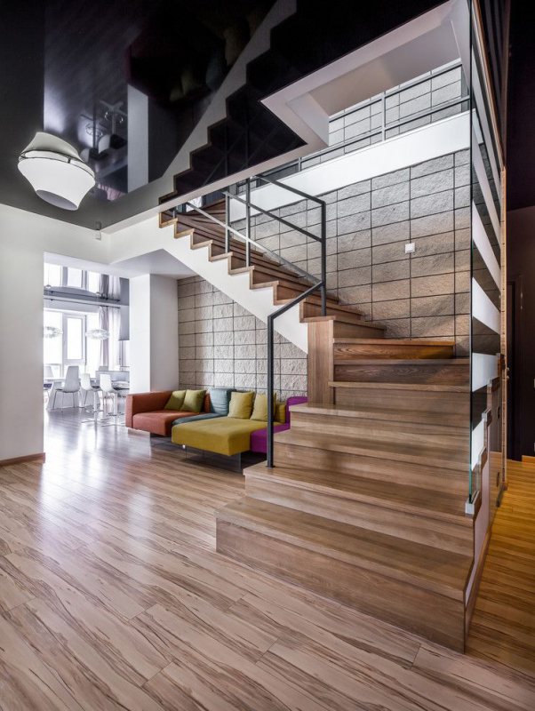 Альтернативный вариант – глянцевый потолок, который «удваивает» за счет переотражения количество ламп. Поэтому вместо шести ламп, направленных вниз, можно установить три, направленные вверх. Но при этом использовать лампочки с небольшим тепловыделением.