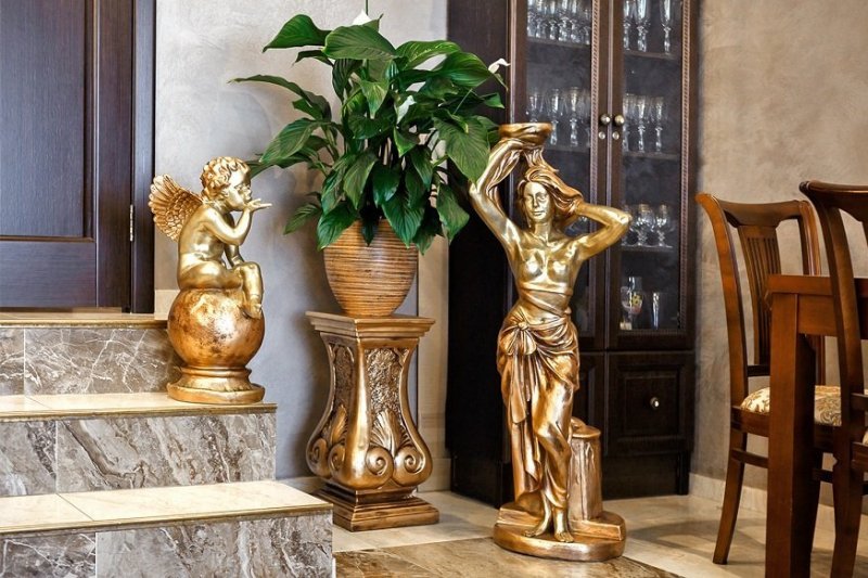 Скульптура — классический элемент интерьера. Правильная расстановка фигурок требует наличия элементарных знаний о сочетаемости материалов со стилем, в котором выполнено помещение. Наиболее универсальны маленькие статуэтки: они подходят для реализации исторических и современных направлений в дизайне, не притягивают к себе слишком много внимания, реже бьются, удобны в эксплуатации и стоят дешевле. Главным достоинством скульптур из полудрагоценных камней является цветовая гамма. Статуэтку можно создать своими руками. Не владея особыми навыками, можно сделать скульптуру из нескольких металлических деталей. А вот для создания бумажной фигурки потребуется пройти специальные курсы. Скульптура в интерьере имеет универсальное предназначение — она может понравиться гостям, вызвать одобрение у ценителей искусства, заинтересовать детей. Благодаря гибкому ценообразованию она доступна для всех.
