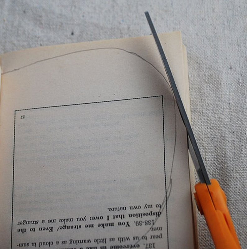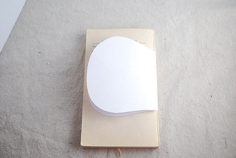 далее от книги следует оторвать обложку, на верхний лист положить согнутую напополам заготовку тыковки, обвести карандашом;