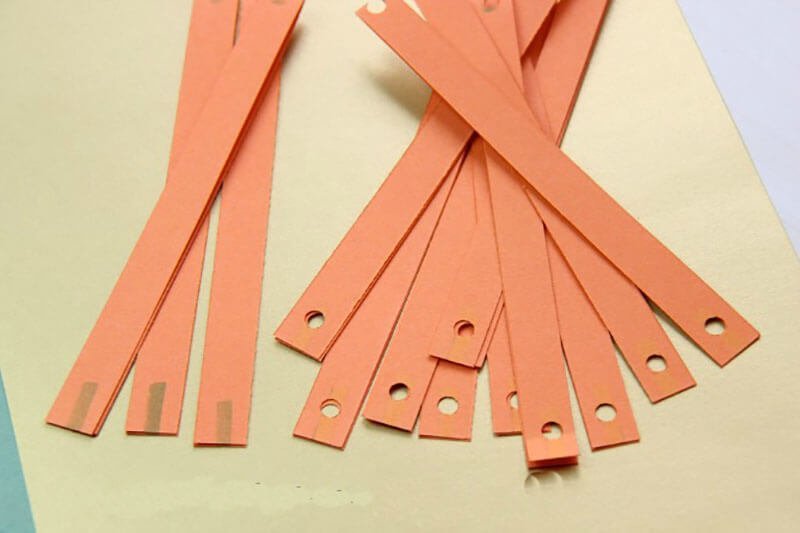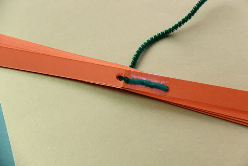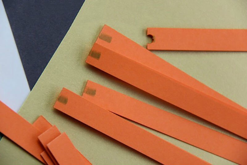 оранжевый лист формата А4 разрезается на поперечные полоски, шириной 2-2,5 см;