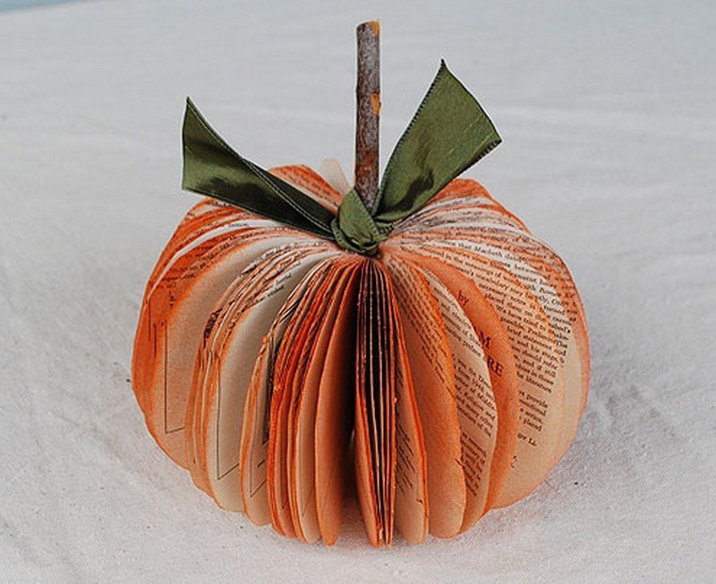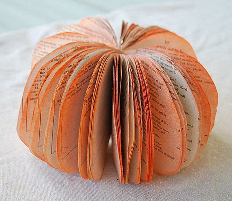 Из толстой ненужной книжки легко сделать объемную тыквочку для Хэллоуина, осеннего интерьерного оформления комнаты.