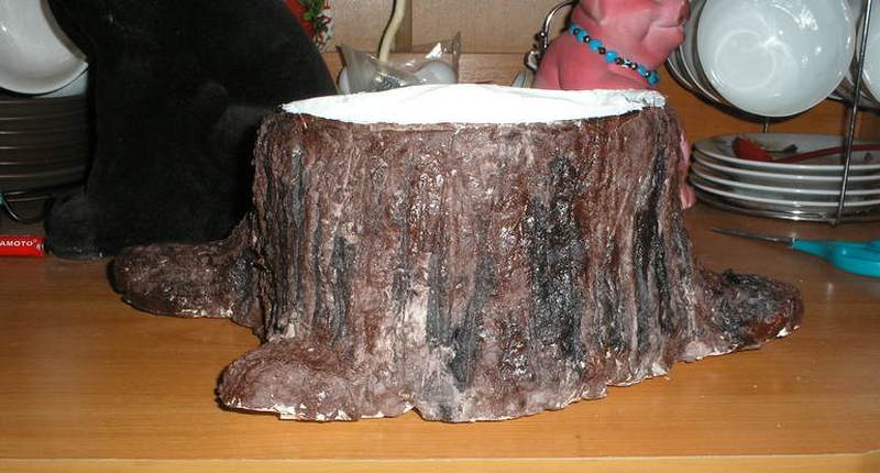чтобы конструкция была прочнее, фактурнее, ее обрабатывают массой из папье-маше – мелко порванные салфетки заливают горячей водой, ждут набухания, добавляют клей, краску;