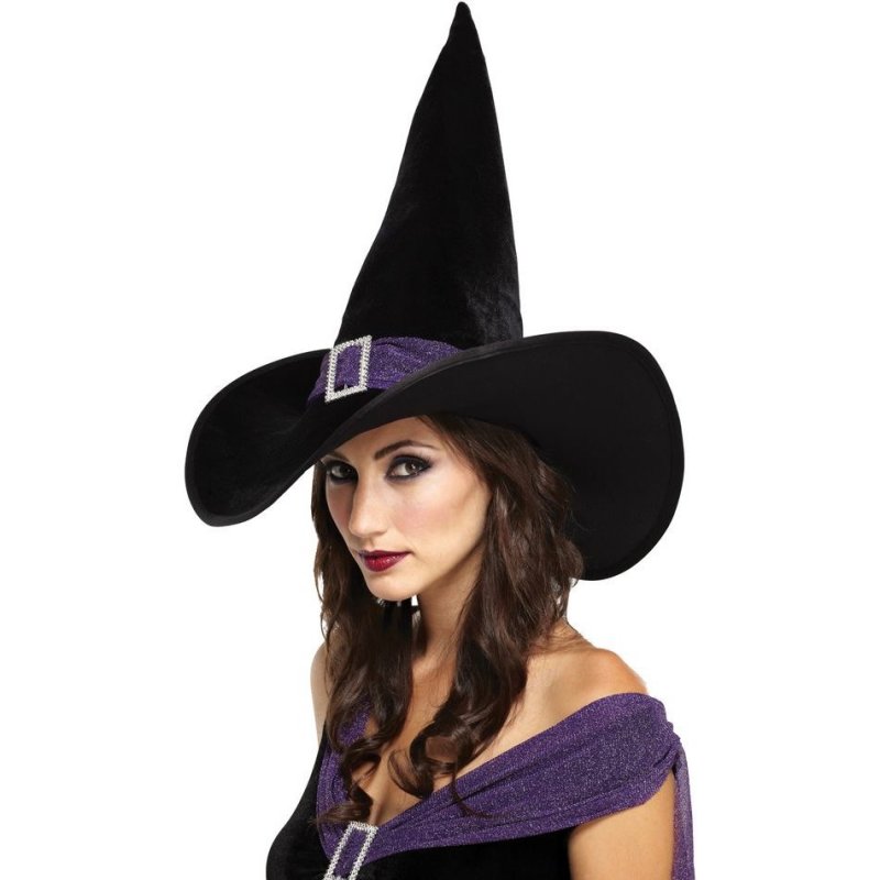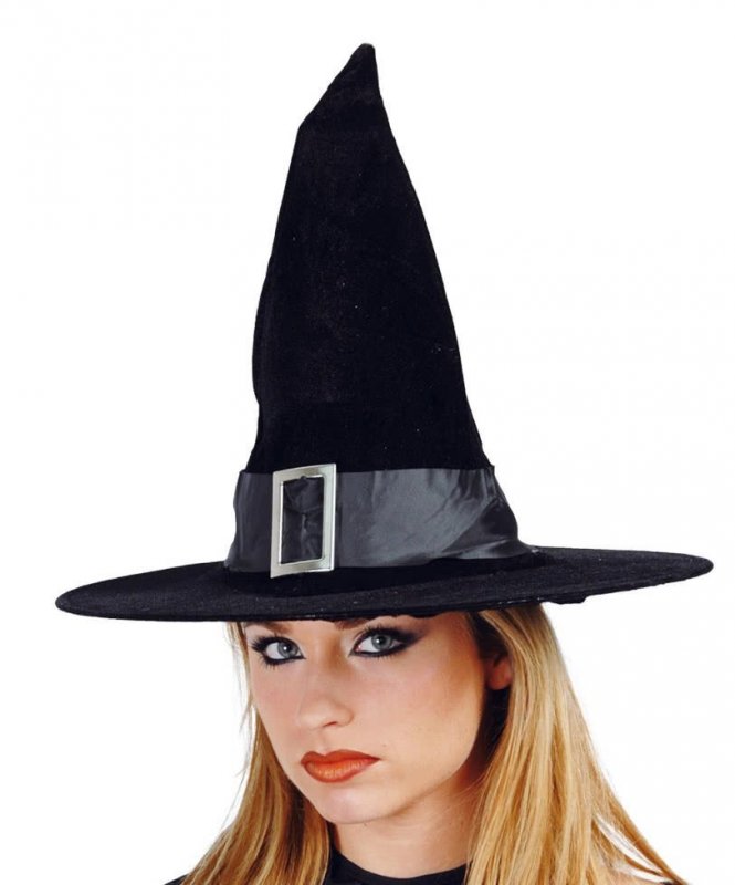 В Средние века ведьмы являлись людям в обнаженном виде и с распущенными волосами. Причем обычно колдуньи обладали пышной рыжей шевелюрой. Чуть позже ведьмы стали скромнее и начали маскироваться более тщательно. Их одежда не отличалась от облика обычной горожанки: платье и чепчик. Только в XVII веке в английских книгах и на гравюрах колдуньи обзавелись остроконечными шляпами. Многие исследователи полагают, что именно с помощью несуразно острого кончика легко было намекнуть на связь обладательницы головного убора со злыми силами. Образ, что называется «попал в точку». Его стали применять повсеместно (в сказках и песенках) и вот уже спустя пару веков ни одна уважающая себя ведьма не являлась на шабаш без этого элемента одежды. Окончательно образ чародейки в остроконечной шляпе закрепился после выхода книги Фрэнка Баума «Удивительный волшебник из страны Оз». Злая Ведьма Запада имела нездоровый зеленоватый оттенок лица, была облачена в черные одежды и шляпу такого же цвета, чей кончик по остроте мог поспорить со шпилем самой высокой башни. Такой облик стал классическим. Его дополняют стильной метлой, возможно, черепом в руке и верным товарищем — волком, вороном, летучей мышью или черной собакой. Казалось бы, чародейка должна выглядеть карикатурно и нелепо в этом наряде, но мрачный имидж женщины, которая на «ты» с потусторонними силами, добавляет облику колорит. Остроконечные шляпы активно используются во время Хэллоуина. Их можно назвать классическим атрибутом ведьминского костюма. Шляпы часто снабжают увесистыми пряжками, как на ремнях. Это голландская традиция, которая постепенно влилась в английский образ ведьмы и в символику квакеров. Сочетание действительно получилось удивительное, ведь одни — представители религиозной организации, а другие — нечисть, с которой те борются.