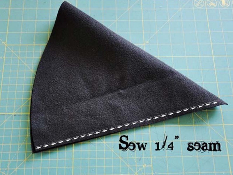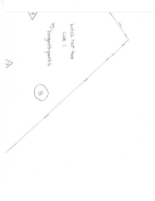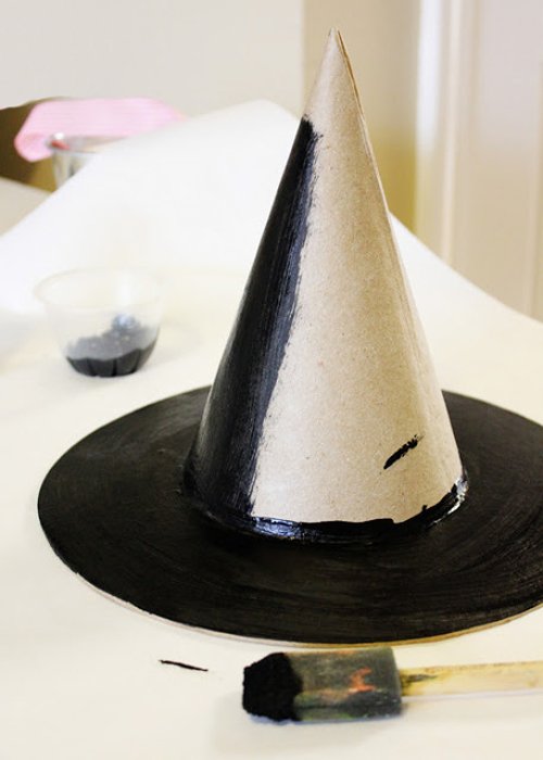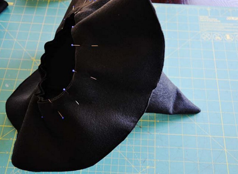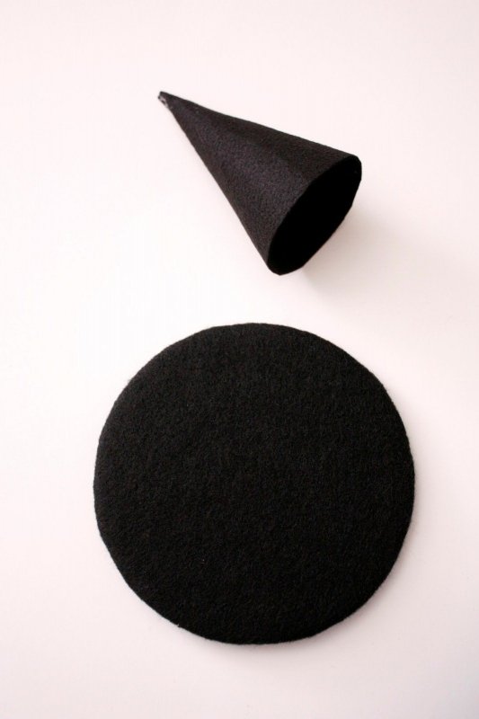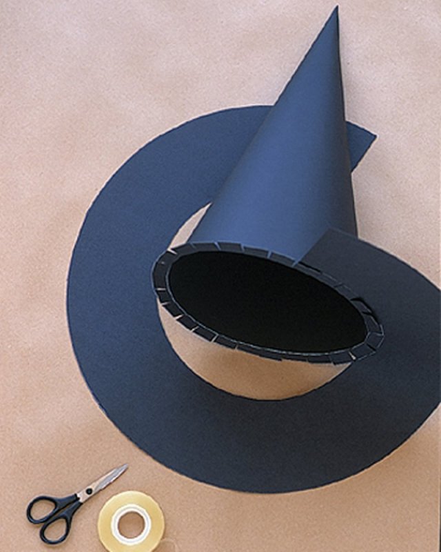Ведьминские головные уборы могут иметь острый кончик, направленный в небо, или мягко сползающий куда-то вбок. Ткань для полей и тульи придется крахмалить.