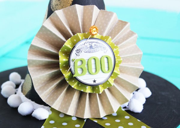 Декоративный головной убор украшают забавными кисточками на кончиках и «пояском» с пряжкой в тон. Детали можно создавать из того же фетра или использовать более воздушные ткани (сетка, вуаль). К полям прикрепляют «пушистую» окантовку из меха или черные перья. Место соединения тульи и полей декорируют бантиками, имитацией паутины, миниатюрными черепами, пауками в блестках, шелковыми ленточками. Необычно будут смотреться шляпы с «осенним» декором из кленовых листьев, травинок-колосков, крошечных тыковок (из новогодних шариков) и алых рябиновых кистей.