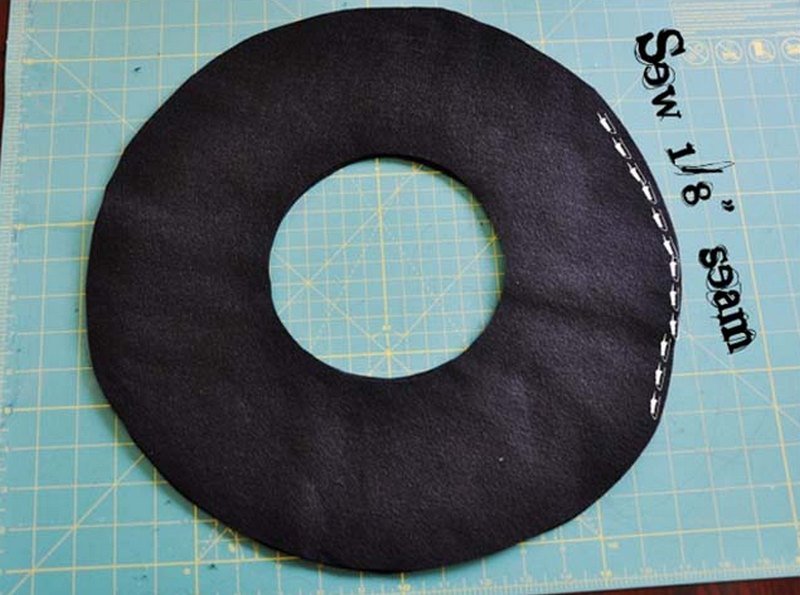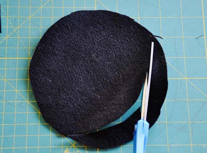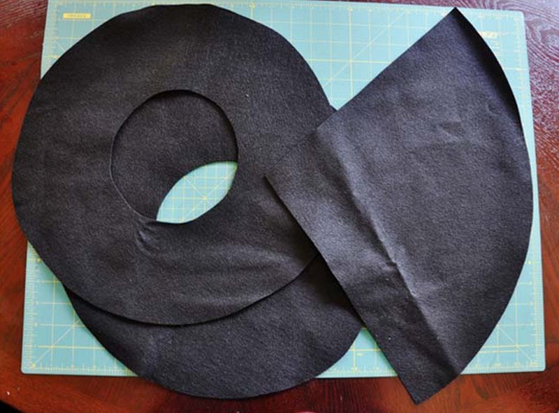 Шляпку из фетра создают по тому же алгоритму, что и бумажную модель, но здесь придется не склеивать элементы, а сшивать их. Сначала нужно нарисовать выкройку для полей и тульи. Обязательно добавляют «запасы». Рисовать рекомендуют на листке бумаги, после чего выкройку вырезают и прикладывают к кускам фетра. Закрепить ее можно с помощью булавок. Затем мелком или обмылком, выкройку перерисовывают на ткани, а по контурам вырезают. Теперь можно начинать шить. Сначала соединяют края тульи, а затем сшивают две шляпные части в одно изделие.