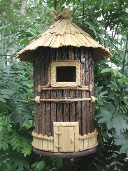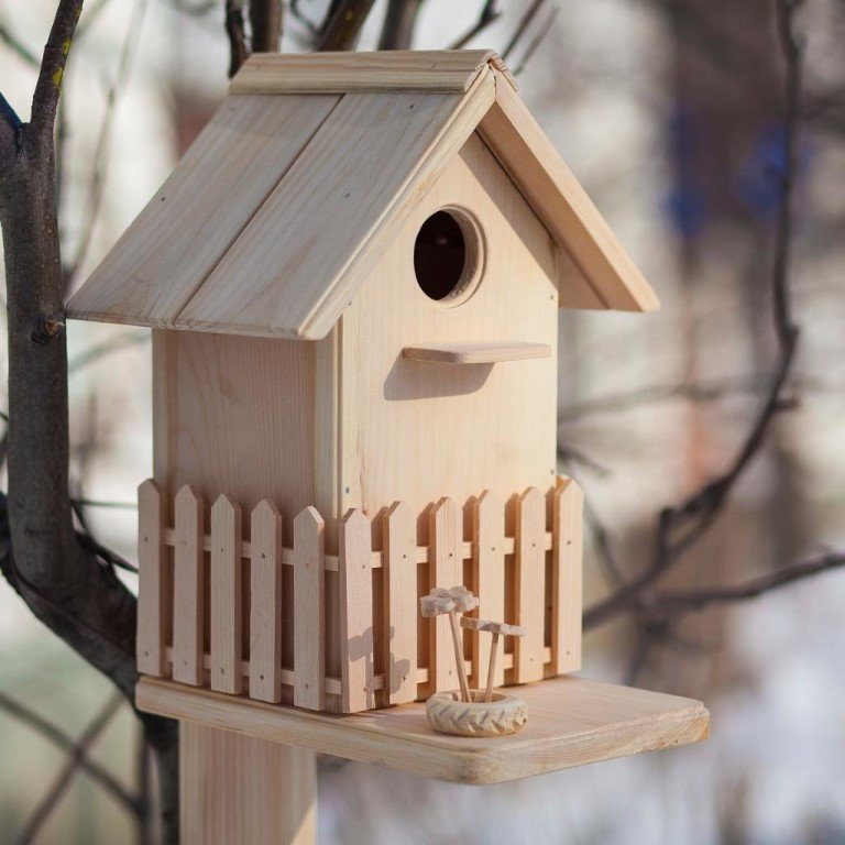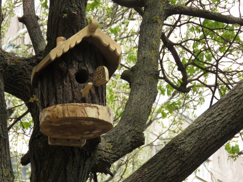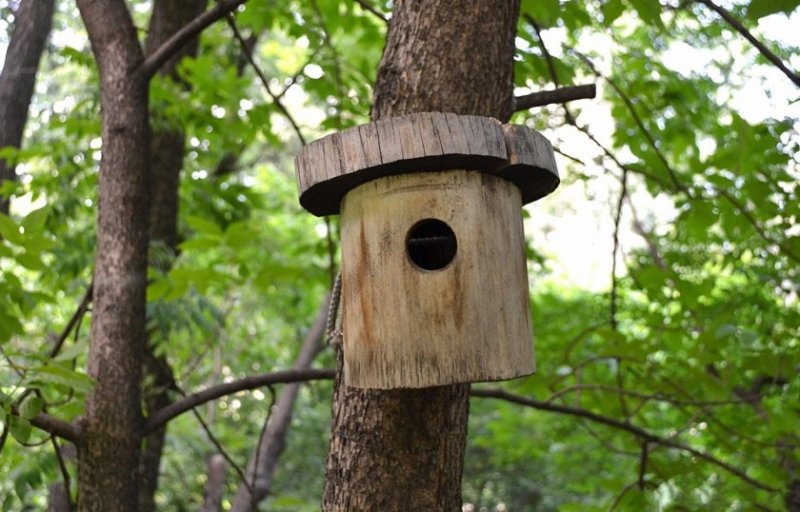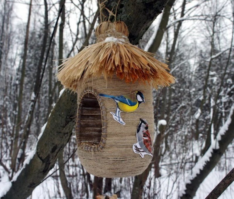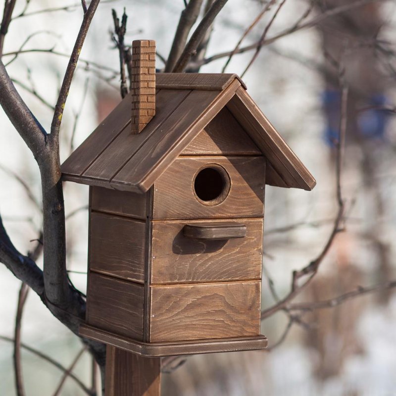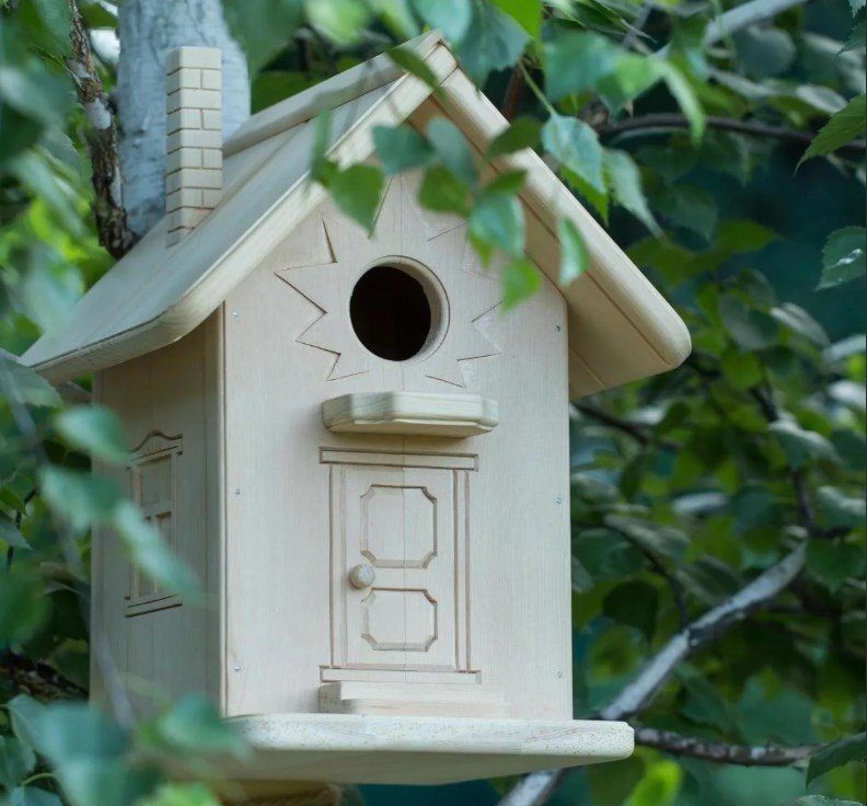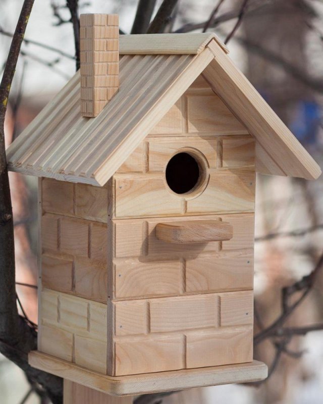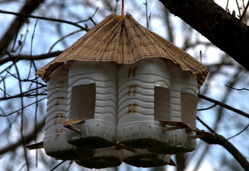 Из пластика, тары из-под молока и картона получаются отличные кормушки: простые в изготовлении и использовании. Скворечники из фанеры, ДВП, ДСП, ОСБ и иных материалов на основе древесных отходов тоже не подходят для птичьего домика. Они плохо удерживают тепло. Древесные отходы (обычно опилки) прессуются и склеиваются с помощью химических составов. Этот «клей» выделяет токсичные испарения. Фанера плохо пропускает звуки. Жильцы могут не услышать вовремя приближение хищной птицы или кошки.