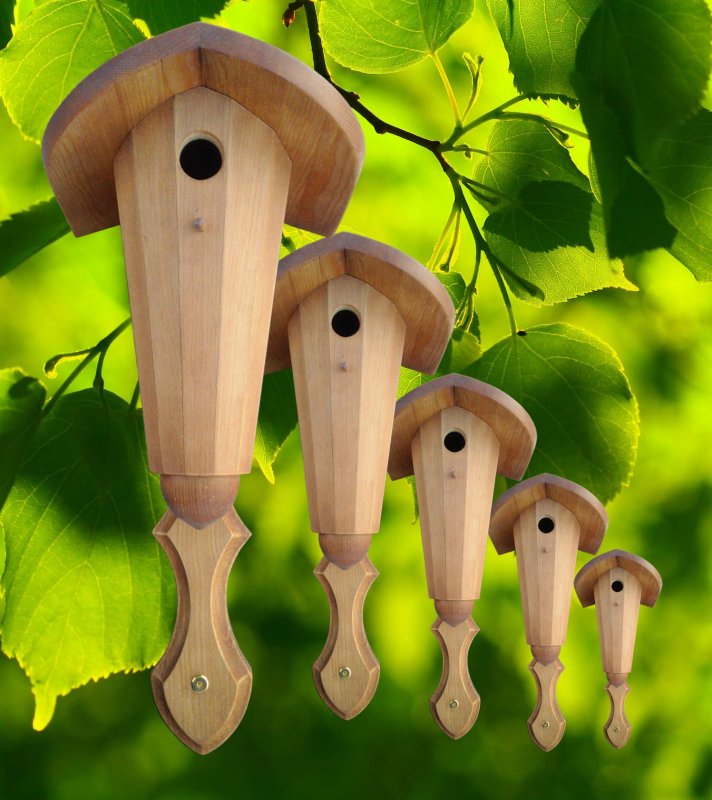 Оптимальная высота для скворечников составляет 30 см. Ширина и длина днища должны варьироваться в пределах 15-20 см. Диаметр летка составляет примерно 5 см. Расстояние от входного отверстия до дна — 15 см. В больших скворечниках птицы выводят по 4-5 птенцов. Малыши вырастут хлипкими. Семья пернатых не может обеспечить кормом такой выводок. На тесные «квартиры» скворцы даже не обратят внимание. Если доски все же выбирались гладкие, то изнутри от днища до летка их поверхность хорошенько исцарапывают. Дорожка из «зацепок» поможет жильцам взбираться наверх. Такие размеры оптимальны для воробьев и скворцов, но в домике может поселиться и другая птичья семья. Для поползней и больших синиц подбирают габариты поскромнее. Площадь дна составляет 10х10 см, высота — 2,7-2,8 см, а диаметр летка — 4-4,5 см. Размеры жердочки и козырька остаются прежними. Для маленьких синичек или мухоловок диаметр летка составляет 3 см, площадь дна — 8х8 см, а высота — 25 см.
