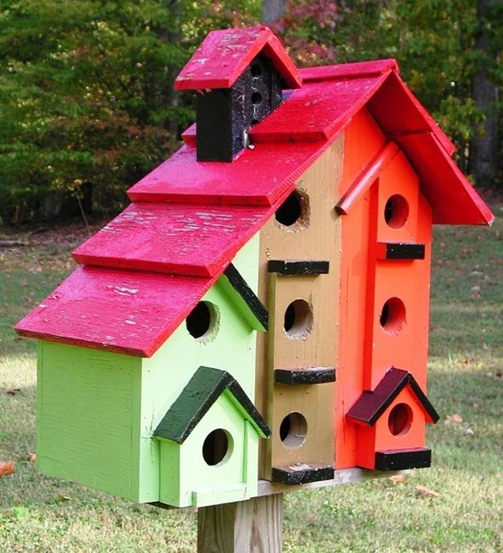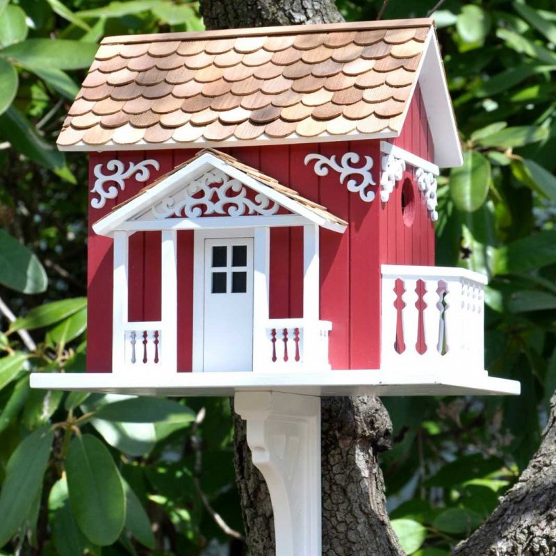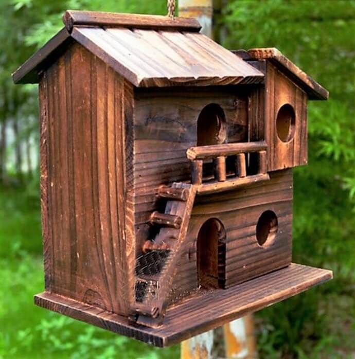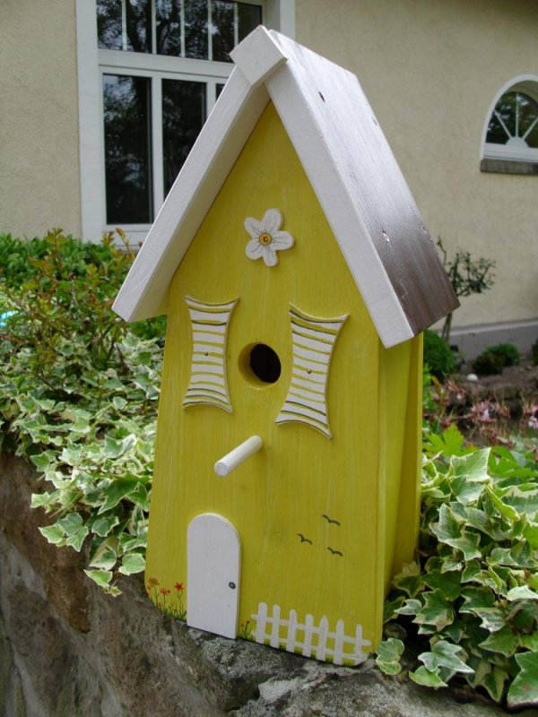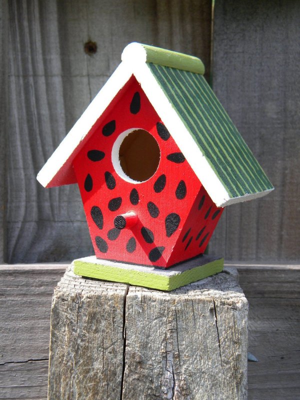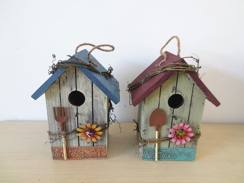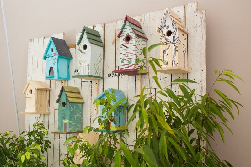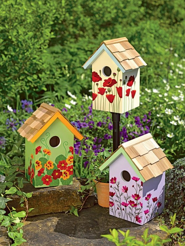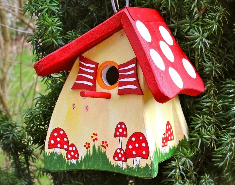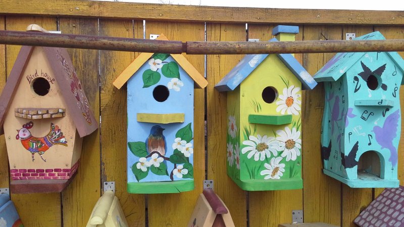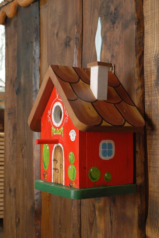 Существует масса способов украшения птичьих домиков. Простейший вариант — покраска. Одни орнитологи считают, что птицам неважен цвет. Другие утверждают, что пернатые больше любят неприметные жилища, которые не выделяются яркими оттенками. Если скворечник окрашивают, то нельзя выбирать токсичные или резко пахнущие составы. Птицы квартиру с «душком» проигнорируют. Цвет краски — дело вкуса человека. Для подстраховки выбирают нейтральные оттенки, которые замаскируют жилище. Иногда поверхность досок покрывают олифой. После высыхания состав защитит дерево от процессов гниения, придаст благородный лоск, продлит срок эксплуатации.