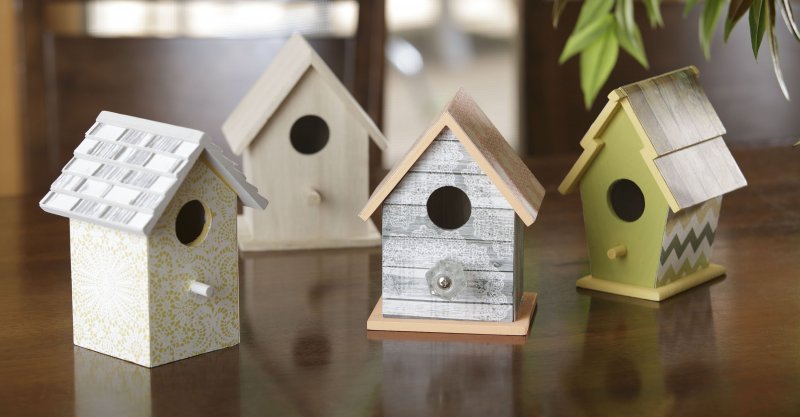 Декорирование скворечника проводят с помощью росписи, в технике декупажа (перенос изображения), из винных пробок, мешковины, яичной скорлупы, спичек, ткани, природных материалов. Большой популярностью пользуется «деревенский» стиль. Чтобы украсить скворечник, потребуются тонкие веточки, их спилы, солома, кора, мелкие камушки, шишки и мох, которым законопачивают щели. Этими материалами декорируют экстерьер домика, закрепляя на стенах, крыше и миниатюрных крылечках. Пробками скворечник обклеивают по фасаду. Материал обеспечивает дополнительное утепление птичьего домика. Пробки размещают, как бревна в срубе. Для крыши изготавливают особую декорацию — имитацию черепицы. Ее делают из пробок, нарезая их поперек на миниатюрные кружочки. Нельзя использовать шуршащие и блестящие материалы. Броский декор отпугнет птиц.