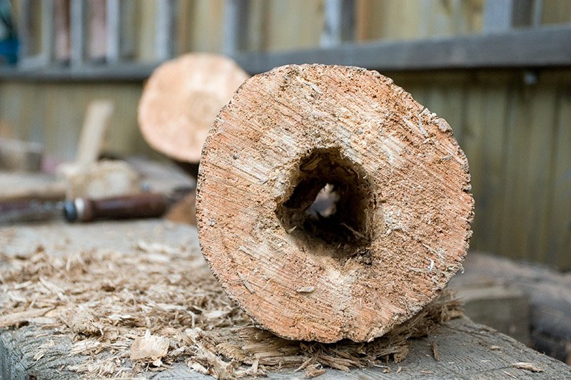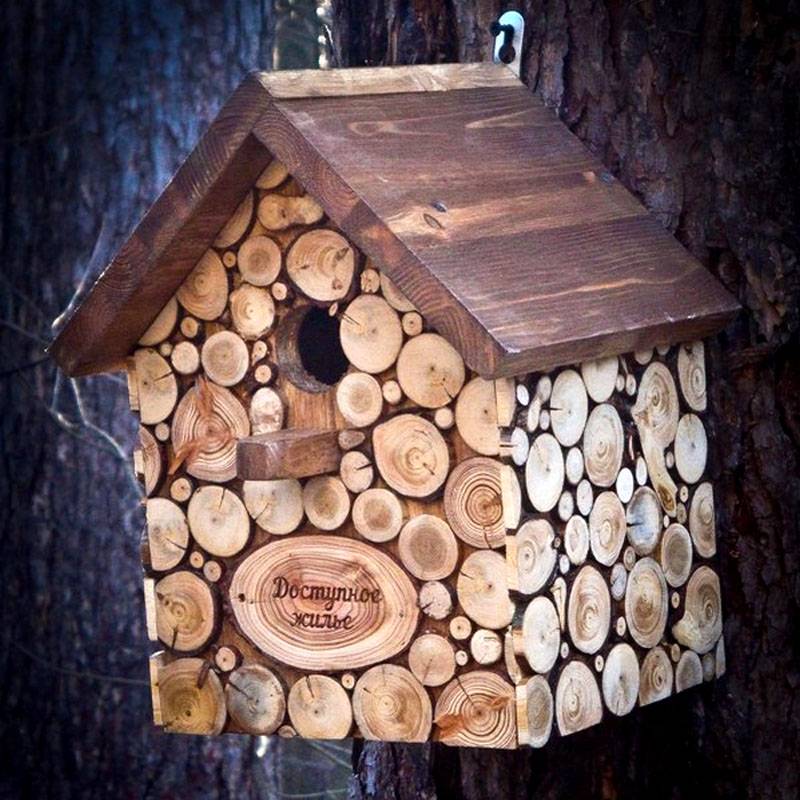 Процесс изготовления скворечника из бревна (дуплянки) более трудоемкий, чем работа с досками: