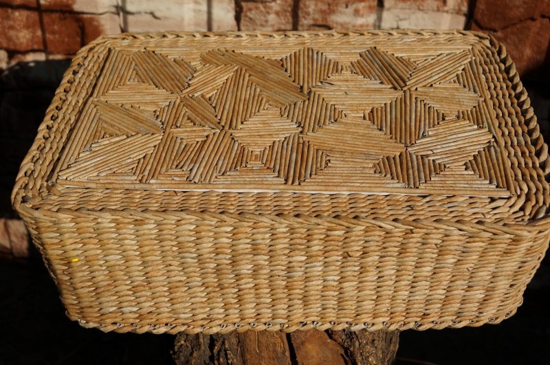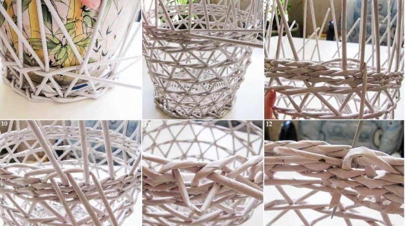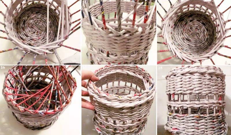 В работе с газетными трубками используются такие же приемы, как и при плетении из лозы, соломки. Лозоплетением люди занимались еще до того, как научились обрабатывать дерево, металлы. Из такого материала делали корзины для ловли рыбы, простые предметы мебели древнего жилища, ограждения для мелких домашних животных. На Руси часто плелись корзины для собирания грибов, ягод, огромные короба, детские люльки, хлебницы и лапти. Также применялась и береста.