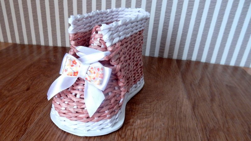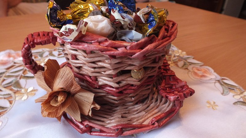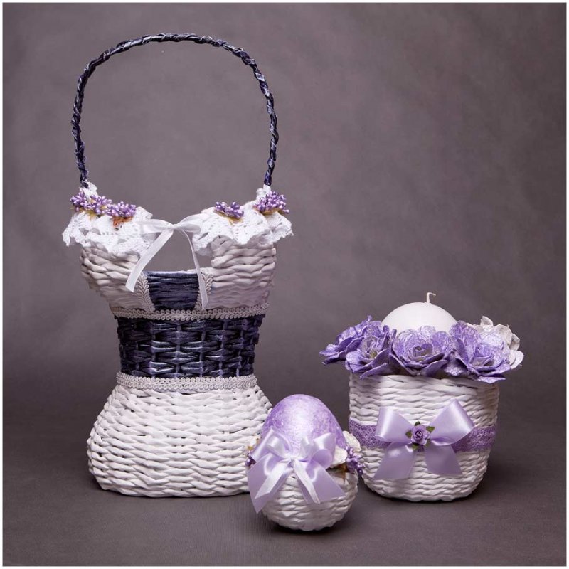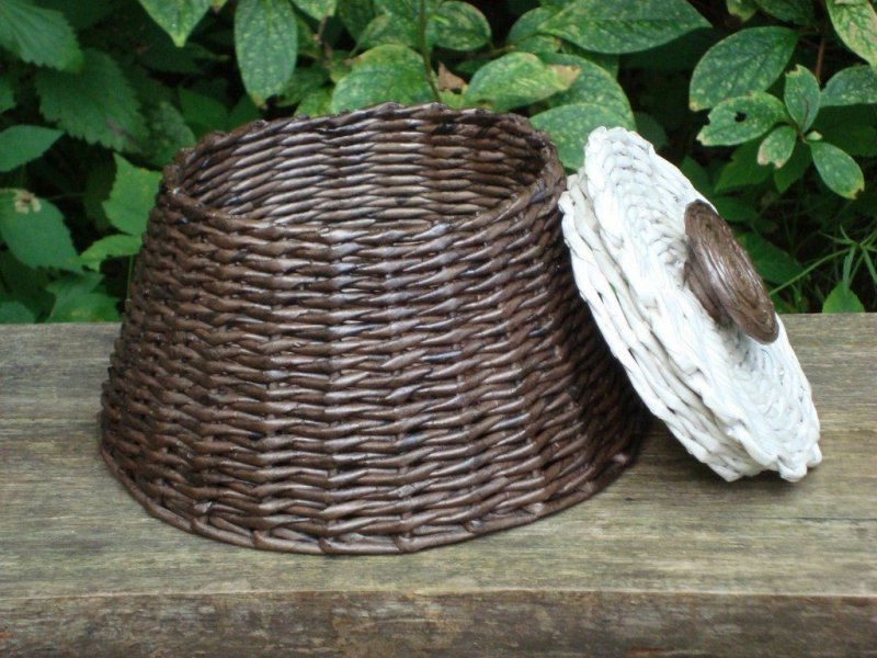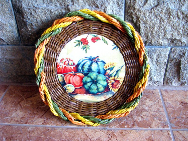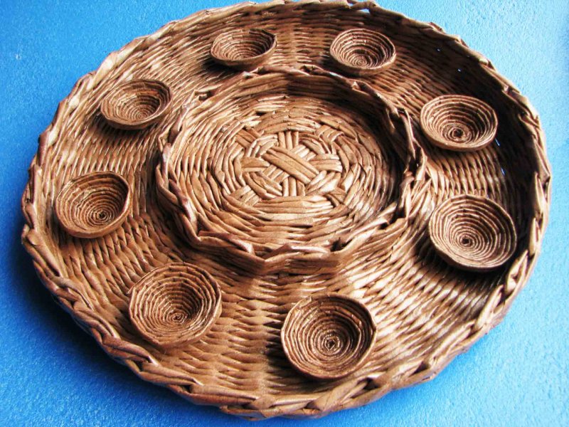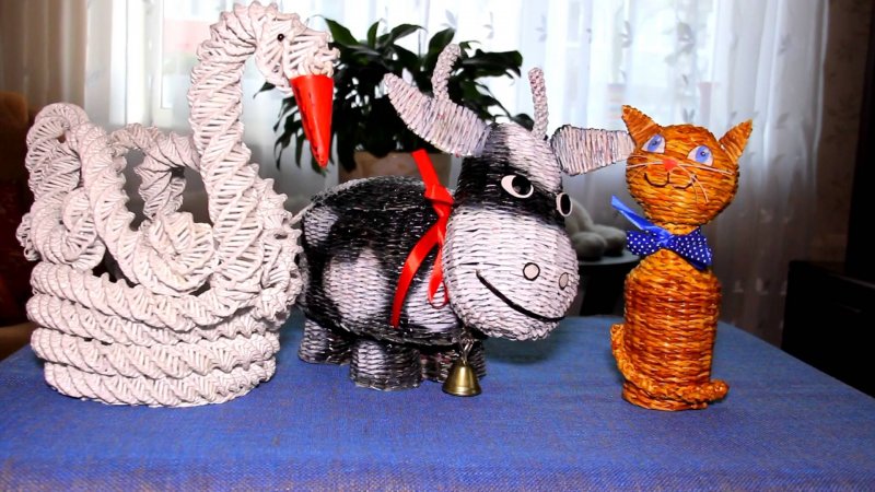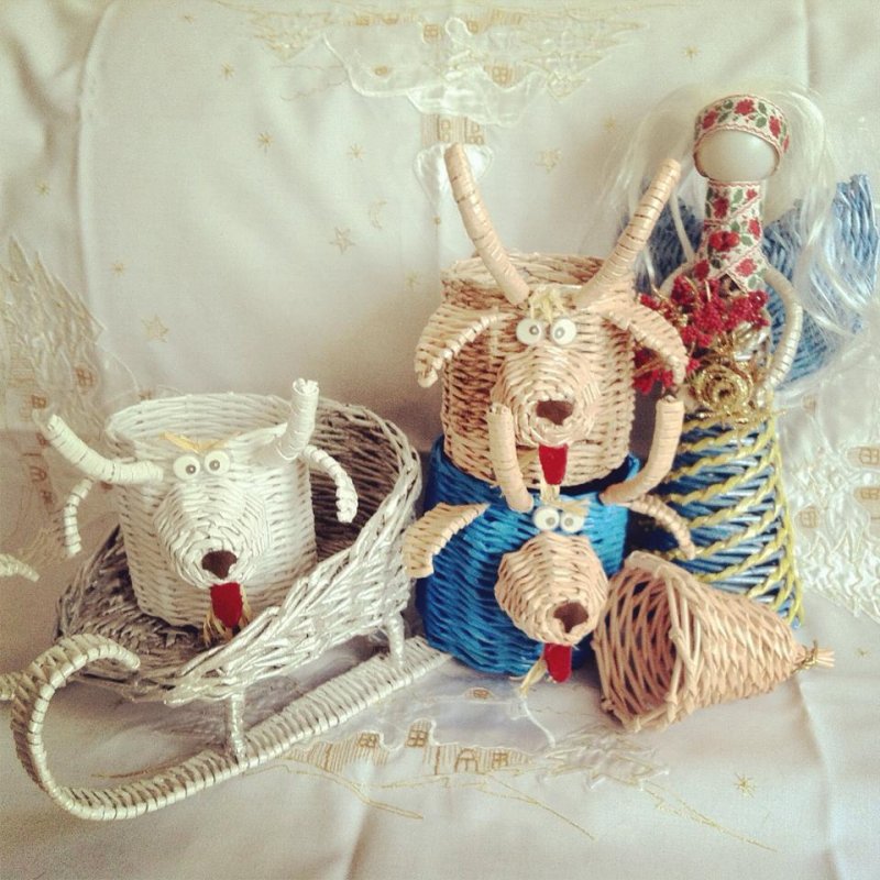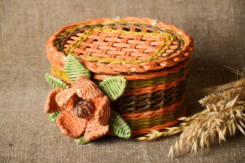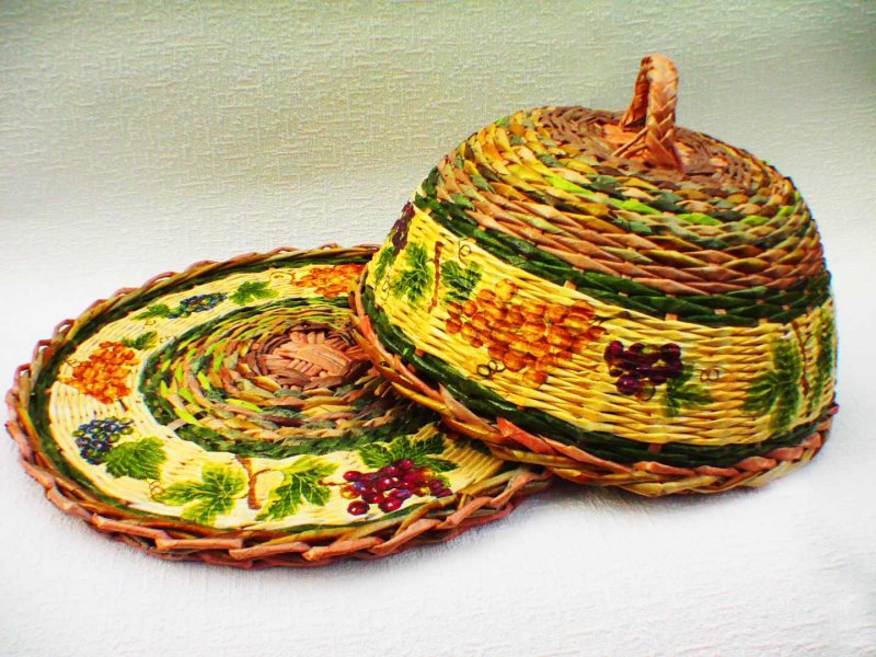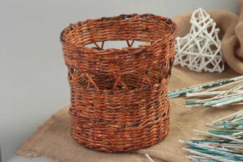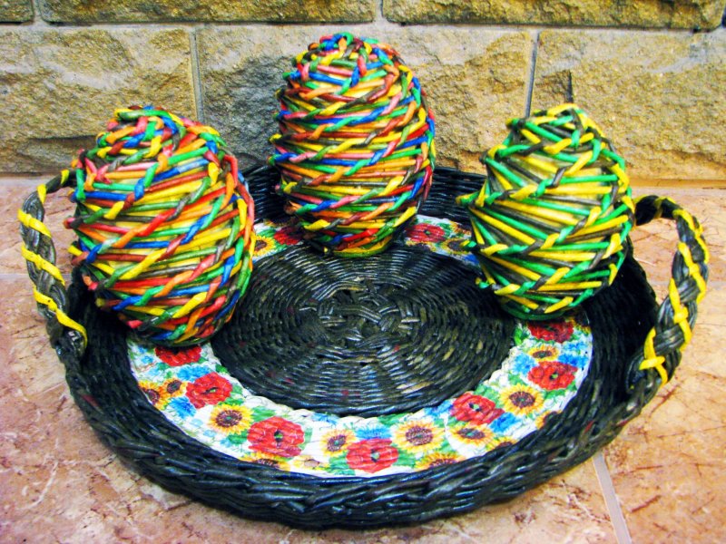 Плетение из лозы – довольно древнее ремесло, при помощи которого изготавливались различные предметы домашнего быта. В больших современных городах настоящую лозу достать проблематично, потому многие рукодельницы перешли на плетение из газетных трубочек, которые, при должных навыках, правильном скручивании, окрашивании, внешне неотличимы от природной лозы. С помощью такого доступного, дешевого материала выполняются различные украшения для интерьера, в том числе праздничные, декоративные кухонные емкости, детские игрушки и сувениры.
