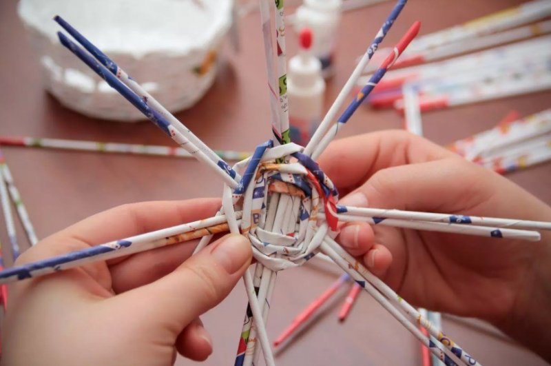 Техник плетения из бумажных прутьев существует множество: