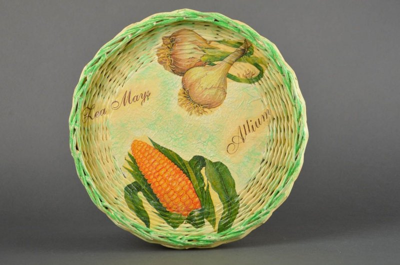 В деле создания кухонного уюта также помогут плетеные вещицы. Изготовление конфетницы, хлебной корзины, подставки для баночек с приправами, начинается с плетения дна. Оно может быть круглым, квадратным либо прямоугольным, ажурным или сплошным.