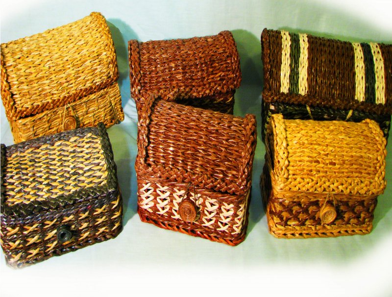 Газетные трубочки можно окрасить в любой колер, но самый популярный вариант – окраска, имитирующая настоящую лозу. Чтобы коробка, шкатулка, корзинка или игрушка из бумаги казалась «настоящей», материал для нее красят спиртовой или водной морилкой. Оттенков морилки существует множество – темный и светлый орех, мореный и беленый дуб, а также палисандр, тик, сосна, махагонь, лиственница, каштан, вишня, ольха, черное дерево.
