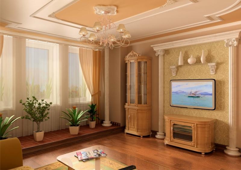 Чем просторнее комната, выше ее потолок, тем более широкие, массивные, объемные конструкции используются.