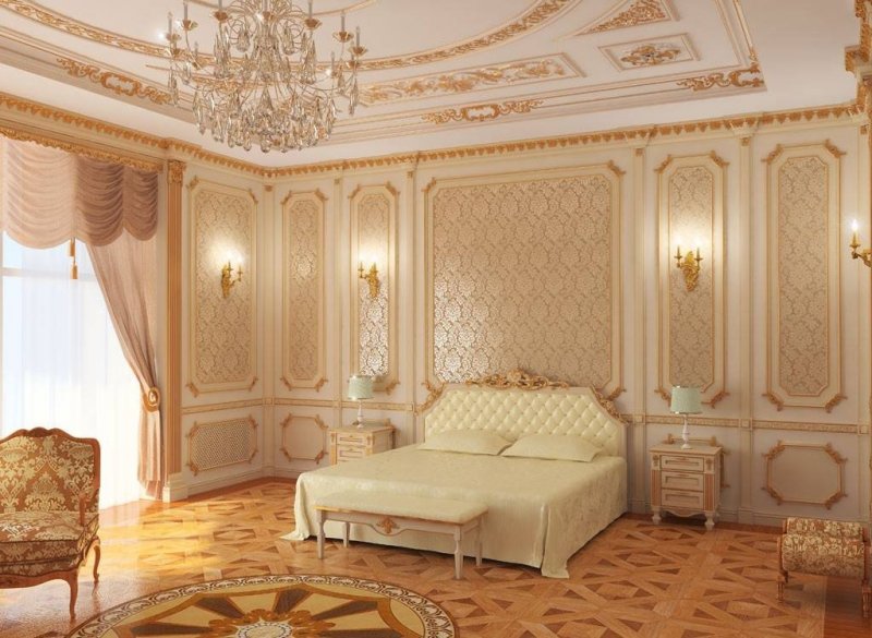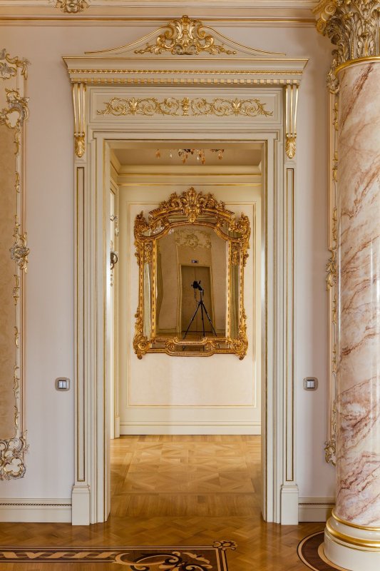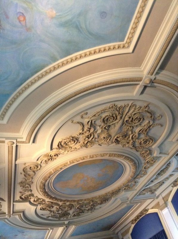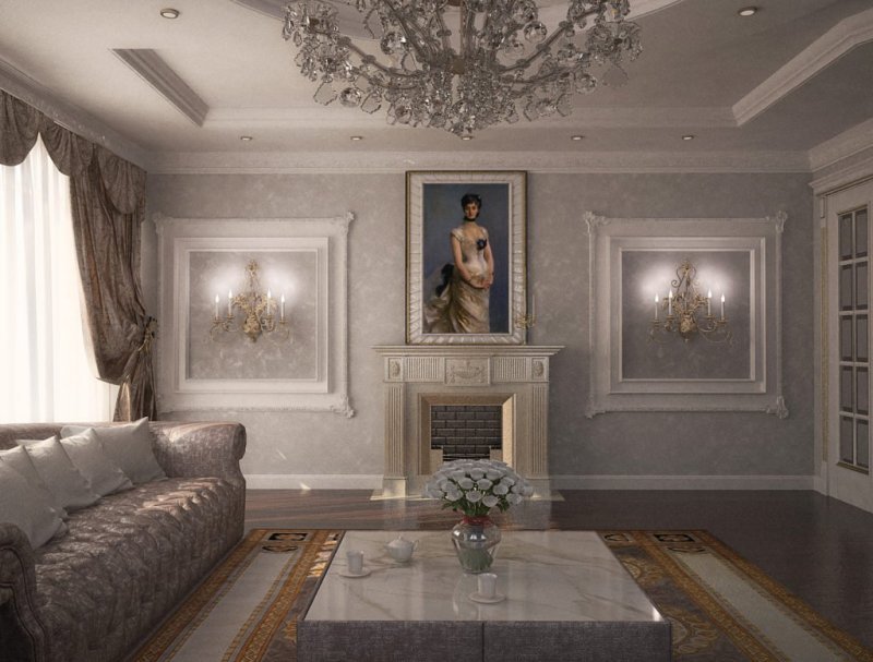 Комнату с большим количеством лепнины не следует перегружать мебелью, особенно резной, объемной.