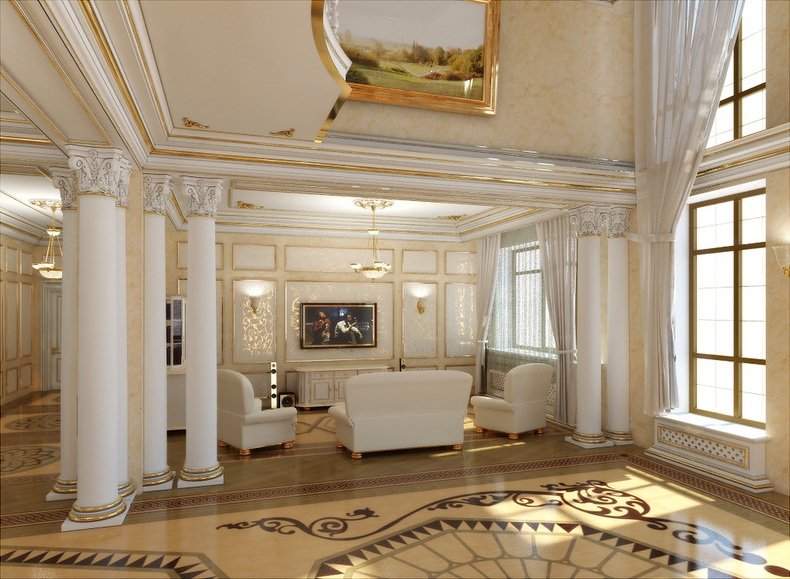 Колонны, полуколонны украшают внутренние пространства, фасады зданий, создавая настоящий дворцовый интерьер. Они выполняются строгой, лаконичной формы или более изящной, тонкой, легкой, могут иметь вертикальные борозды.