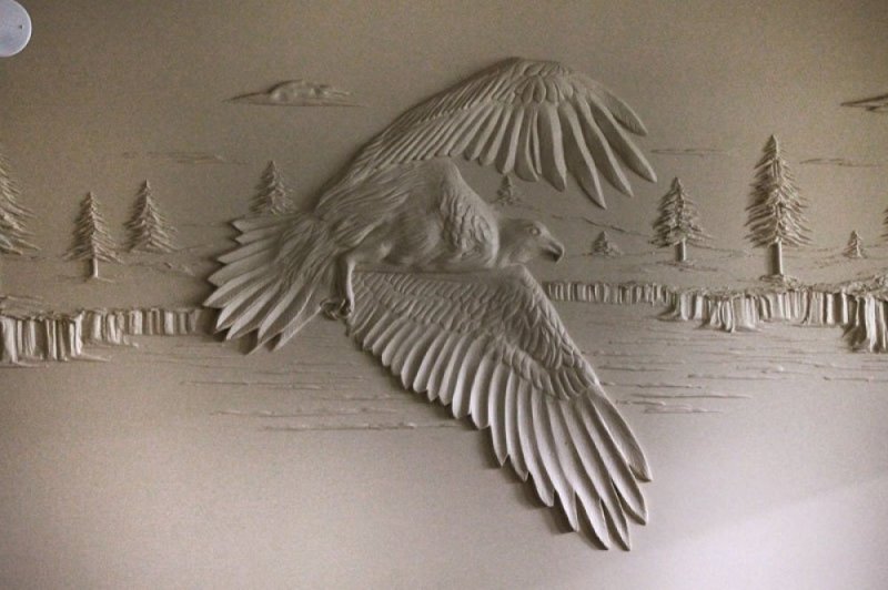 Готовое панно выделяют выразительной багетной рамой, «оживляют» с помощью грамотно подобранной подсветки.