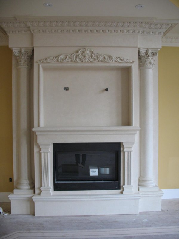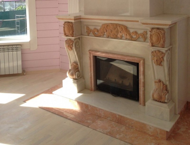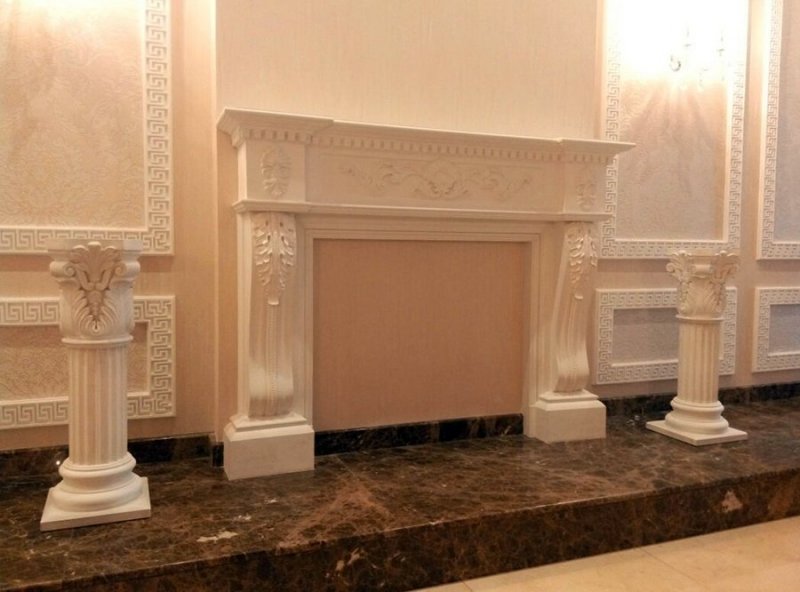 Лепной камин из гипса весит не слишком много – укреплять перекрытия пола под него необязательно.