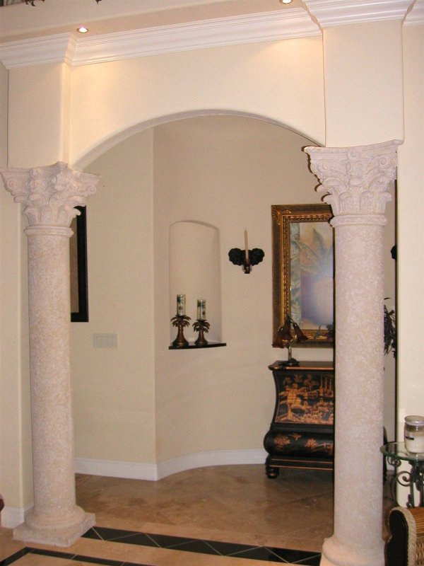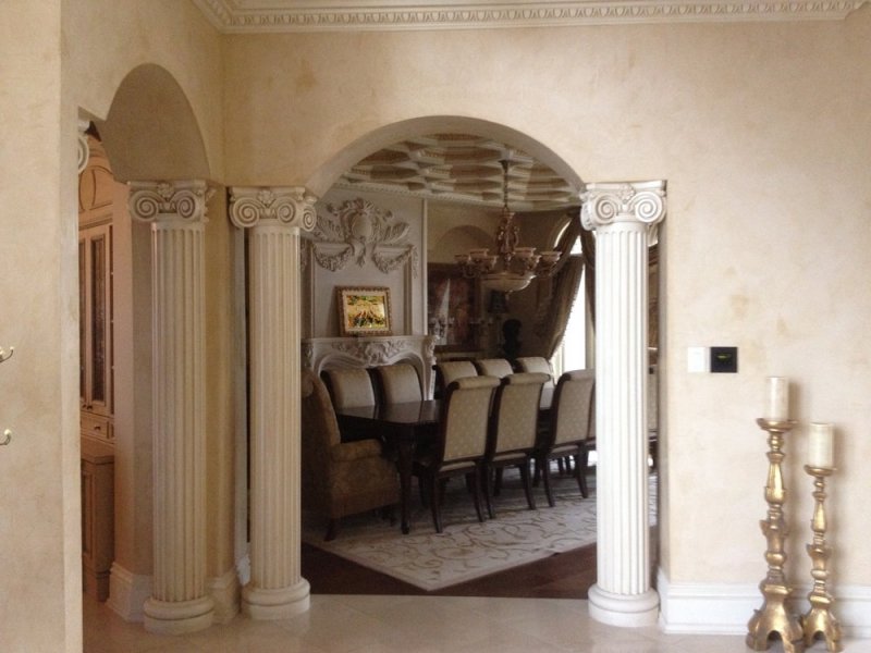 Пилястрами называются плоские колонны-столбы, их качественная имитация на стенке, в арке. Они используются как продолжение стены, в качестве зонирующего элемента посредине, а также для обрамления дверей, окон. Такое оформление отлично подойдет для создания готического, романского интерьера, используется как внутри помещений, так и снаружи зданий. В отличие от колонн пилястры не требуют много свободного места, что позволяет монтировать их даже в относительно небольших квартирах, домах, офисах.