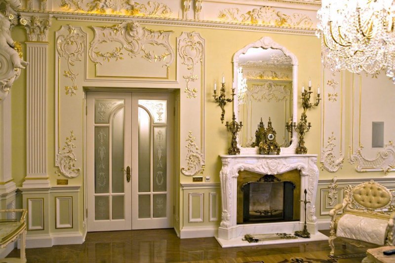 Все виды декоративной лепнины одновременно применять нежелательно, даже в шикарных, дорогих интерьерах рококо или ампира. Достаточно двух-трех деталей – фактурное панно и огромные карнизы в сочетании с потолочной розеткой, несколько полуколонн с гипсовым обрамлением зеркал, роскошный лепной камин напротив такой же арки, отдельные элементы в углах потолков, стен.