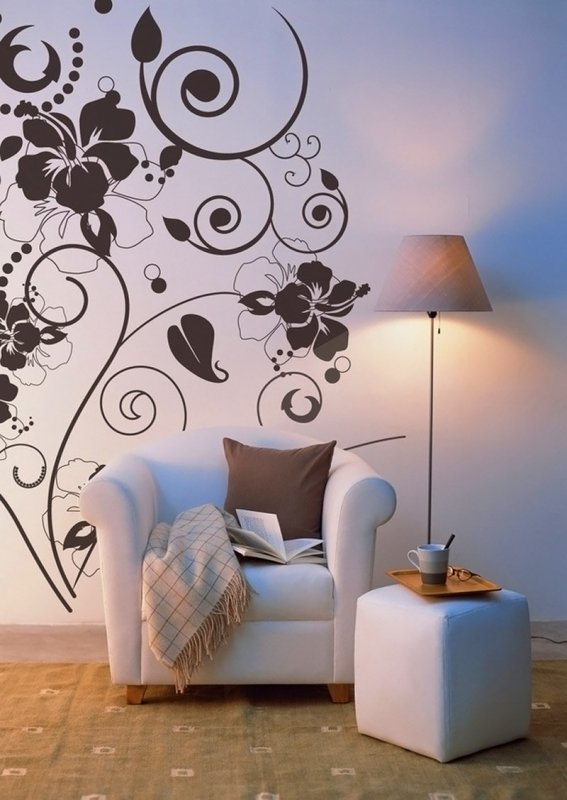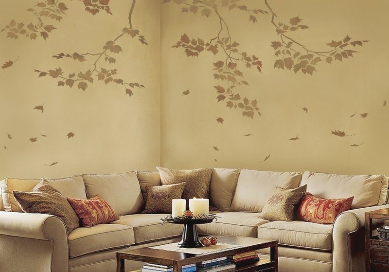 Оригинальные декорации, орнаменты подбираются не только под задуманный стиль интерьера, но и с учетом умений, художественных навыков того, кто будет оформлять помещение. Если опыта подобного декорирования комнат пока нет, лучше приобрести готовые магазинные шаблоны, не слишком замысловатой конфигурации.