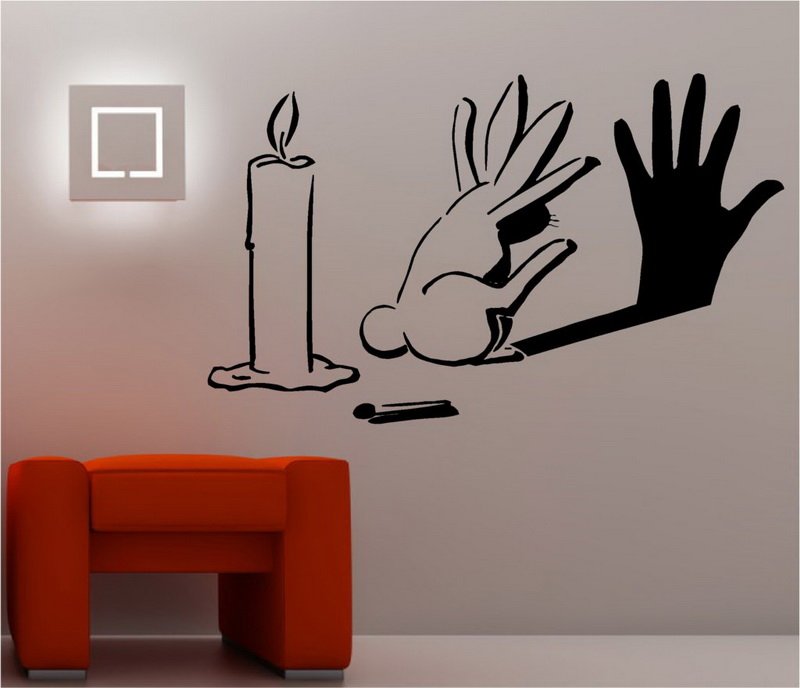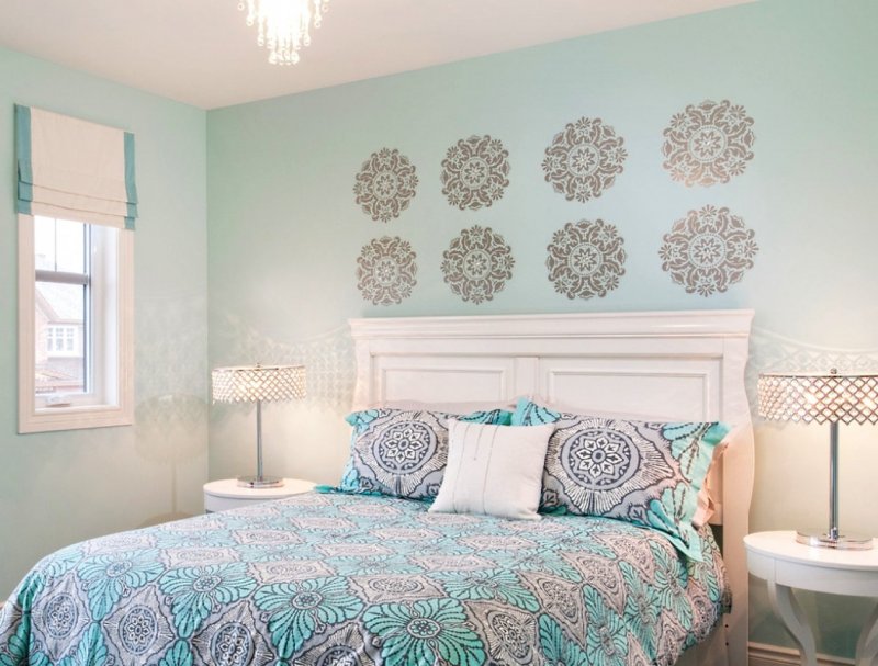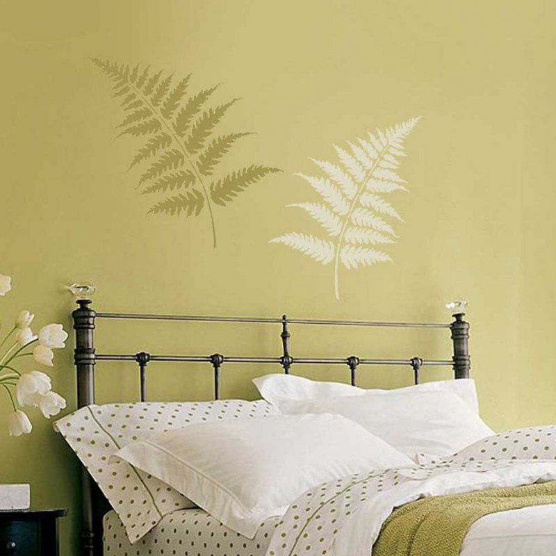 В разных комнатах используются разные шаблоны: в ванной, кухне, открытой лоджии влажность часто бывает повышенной, потому рисунки гуашью, акварелью из тюбиков здесь неприемлемы, по причине неустойчивости к воздействию воды. Для спальни предпочтительны спокойные сюжеты, неяркие краски, минимальное число резких контрастов. В детской наоборот – чем больше красок, тем лучше, но только при условии, что стены окрашиваются в тусклый колер. Антитрафареты, выполненные в пастельных тонах, идеально подойдут для мест отдыха, сна, медитации.