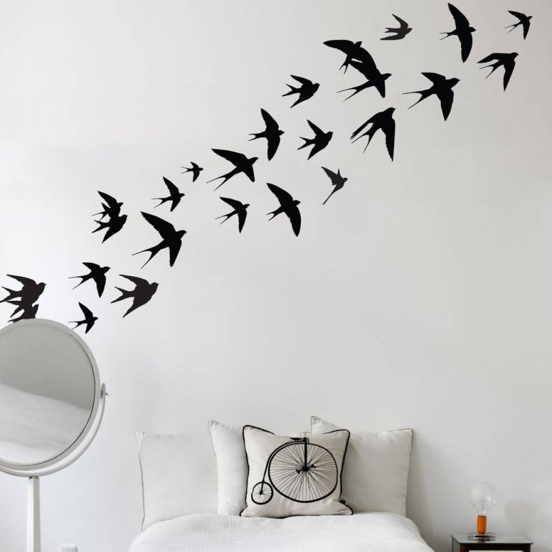 При помощи трафаретов можно оригинально задекорировать не только окрашенные или оклеенные обоями стены, но и потолки, полы, шкафы, зеркала, перегородки из стекла, двери, окна, камин и др. Для просторных помещений подойдут крупные настенные изображения, заполняющие собой пустоту. Тесные комнатки украшаются небольшими картинками, отдельными элементами, не загромождающими пространство. Наиболее часто шаблонные украшения размещают вокруг входных или межкомнатных дверей, розеток, выключателей, зеркал, над кроватями, столами, тумбочками. В санузле оформляется пространство над каждым сантехническим прибором, в детской обычно разукрашивают подавляющее большинство свободных поверхностей.