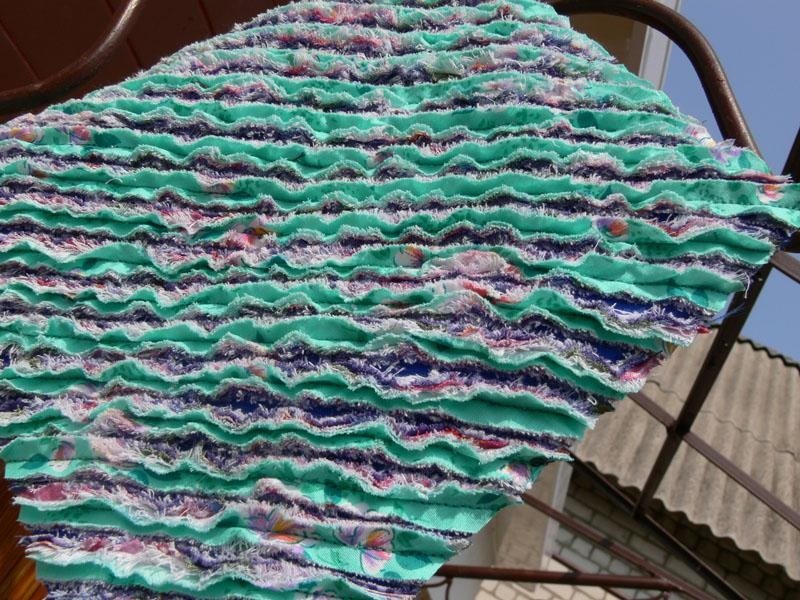 Драп или джинсовый материал позволяют получить хороший результат. Сочетание с другими видами лоскутов создает оригинальные узоры готовых изделий. А вот работать с таким сырьем, как синель, шелк сложно. Но результат оправдывает их использование.