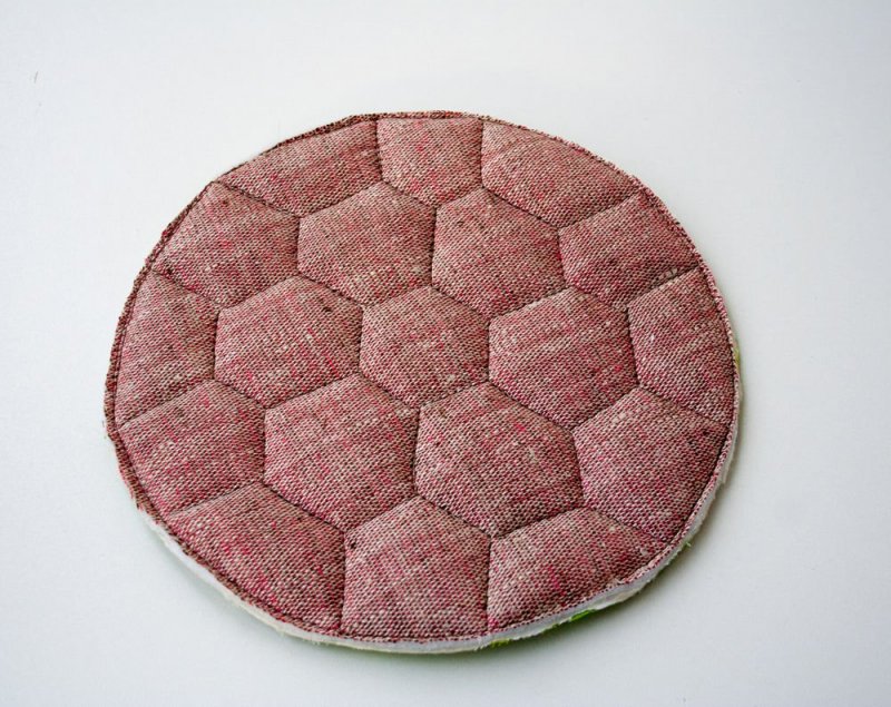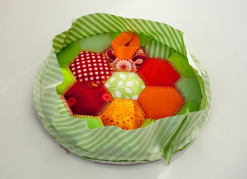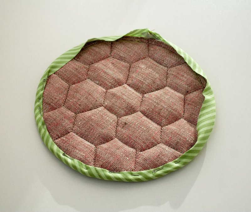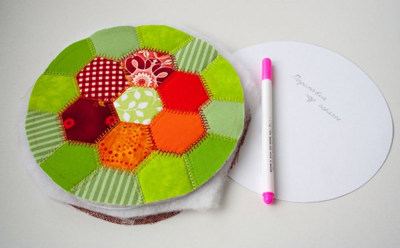 Сшивание минимум трех слоев ткани – главный признак данной техники. В отличие от традиционного пэчворка, здесь применяют промежуточный слой – наполнитель (синтепон). Шьют изделия вручную и на швейной машинке. На лицевой поверхности выполняют объемный стеганый узор, который создает трехмерный эффект.