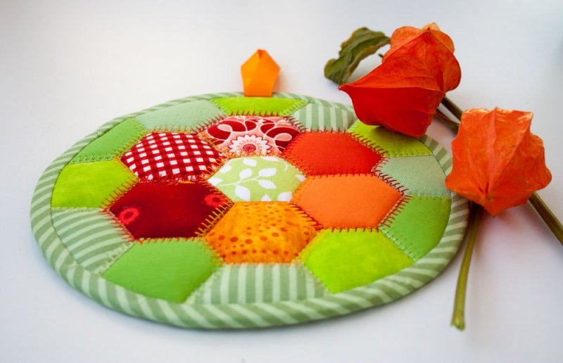 Самая распространенная техника шитья в мире. Зародившись в Англии, она перекочевала в другие страны. Характерные черты стиля – сочетание точных геометрических форм с односложностью рисунка. Стандартное полотно состоит из двух слоев: подкладки и лицевой стороны, которая сшивается из лоскутов. Этот образ подходит для создания предметов разной величины, например, рукавицы, наволочка на подушку, коврик для прихожей.
