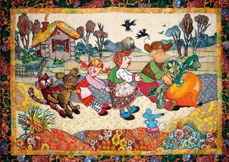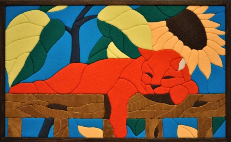 В этой технике рекомендуется применять натуральный материал. Стиль подразумевает создание изображений, где обрезок ткани и приклеивают, и пришивают к полотну. Лоскутный материал не следует клеить на аппликации, которые в последующем попадут в стирку.