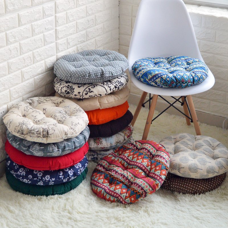 Принцип изготовления похож на способ пошива накидки для квадратного сиденья. Самый простой вариант предусматривает использование резинки. Первым делом с табурета снимаются замеры, определяется диаметр. Ткань размечается с припуском около 5 см. Обратная сторона материи загибается на 2 см. Нужно прострочить кант в 1 см от загибки — в результате выйдет «туннель». Резинка будет располагаться в нем. Следующий этап — наполнение. В заготовке делаются небольшие надрезы. Набивка распределяется равномерно по всей сидушке. Надрезы аккуратно зашиваются — это делается только вручную. Потом изделие строчится на машинке по периметру. Некоторые модели накидок визуально похожи на крышечки банок. Также на круглом табурете будут хорошо смотреться вязаные чехлы. В процессе их создания нужно использовать различные петли: