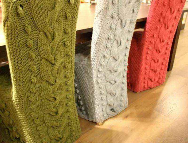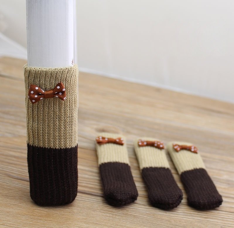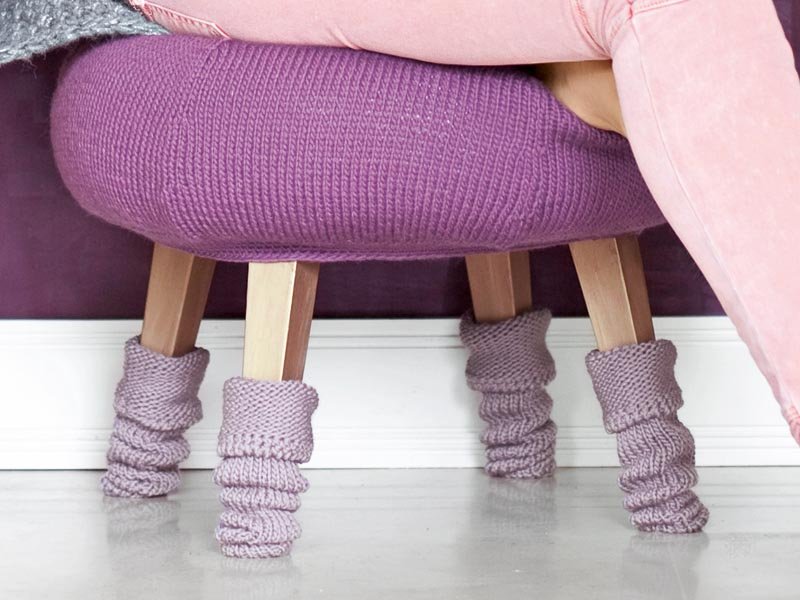 Эти изделия предназначаются для сохранения хорошего состояния напольного покрытия. Помимо этого, стул не будет издавать неприятных звуков от перемещения по полу. Существует множество интересных способов выполнения, в том числе чехлы в виде носочков, «кошачьих лапок». Большинство таких изделий вязаные. Чехлы можно быстро сделать своими руками, поэтому нет смысла тратить на них деньги. Для вязания рекомендуется использовать нить «Дарничанка» — она очень прочная. Процесс начинается с создания нескольких воздушных петель. Вокруг них делаются столбики без накида. В третьем ряду нужны двойные (два) столбики без накида из одной петли и обычные без накида. В следующем рядке шьются такие же столбцы, но за дальнюю дужку петли. Кроме них необходимо делать СБН из одной петли и за дальнюю дужку. В следующем ряду — опять обычные без накида. Нить обрезается и закрепляется. И так четыре чехла. При желании они дополнительно украшаются.