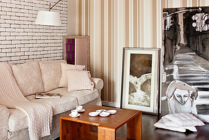 Сущность метода – соединить вертикально обои различных тонов, фактур. Способ позволяет поднять визуально уровень потолка. Комната будет казаться тем выше, чем более тонкими будут фрагменты рисунка. Сочетают полосы необязательно одного размера. Разные по ширине полоски чередуют в определенной последовательности.
