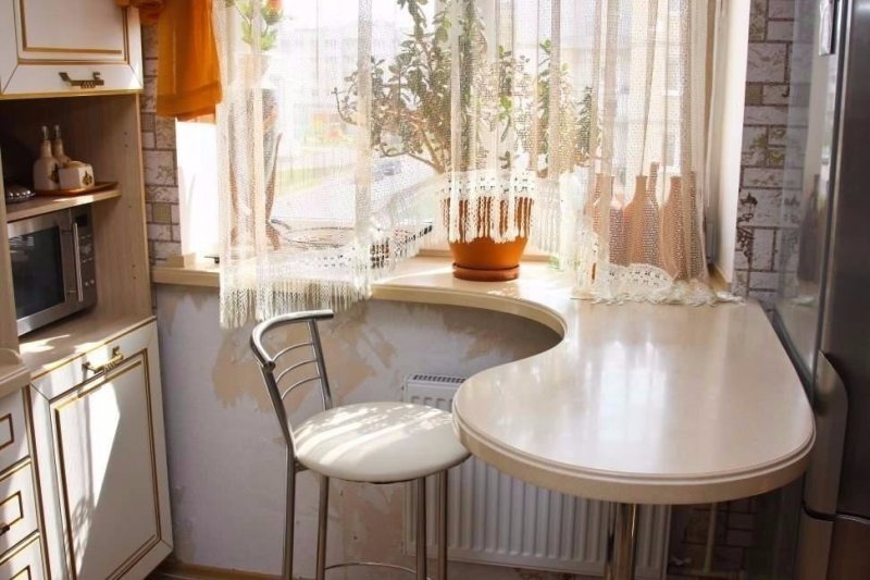 Можно не ограничиваться столом. Подоконники часто переделывают в барные стойки при объединении лоджии, балкона с кухней или жилой комнатой.