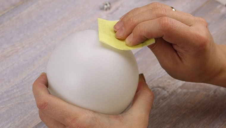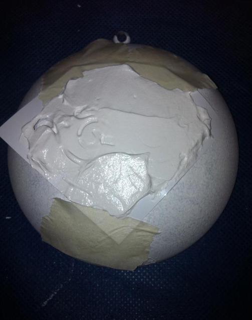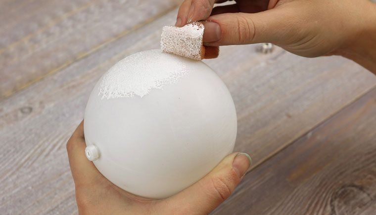 В качестве грунта можно использовать краску или гипс. Тонким слоем покрываем шар и оставляем сохнуть. Время сушки зависит от материала игрушки. При необходимости можно сделать многослойный грунт, но только после полного высыхания предыдущих мазков.