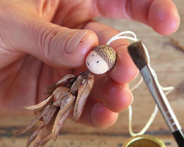 Новогодние каникулы – идеальная пора для творческих вечерних занятий. Многие профессиональные мастерицы и просто любители эксклюзивных новогодних игрушек предпочитают работать с натуральными материалами. Из обыкновенных желудей получатся оригинальные и простые елочные украшения. Их можно собрать в подвесную композицию, просто покрасив шляпки в золотистый цвет, или сделать красивую смешанную гирлянду с добавлением маленьких шишек.