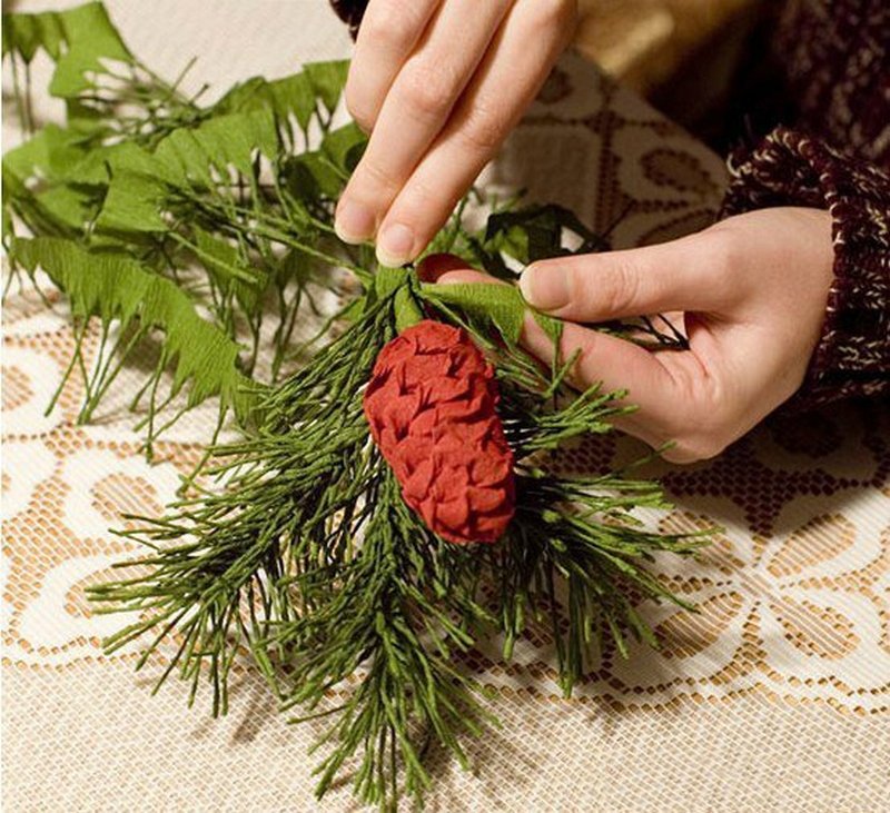 На любой новогодней елке должны присутствовать шишки. Бумажные поделки такой формы будут очень кстати. Сделать игрушку самостоятельно можно несколькими способами. Для этого необходимо точно следовать рекомендациям следующих мастер-классов: