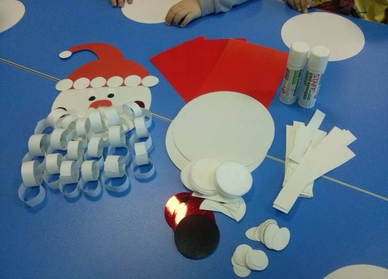 Украшать новогоднюю открытку можно любыми тематическими персонажами. Для создания оригинальной поделки вместе с детьми рекомендуем выбрать именно Деда Мороза. Этого персонажа любят все малыши. Для изготовления открытки понадобится лист картона, цветная бумага, вата, клей ПВА, ножницы, карандаш. Работа проводится так: