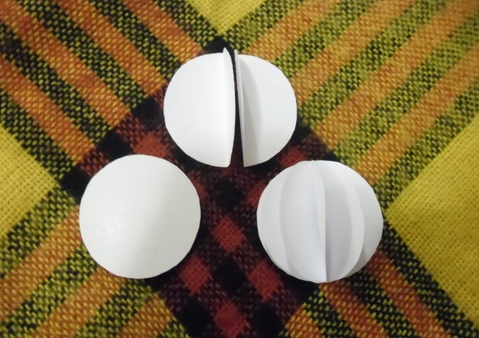 По аналогии с мастер-классом по изготовлению объемных елочек можно сделать и объемные шарики: