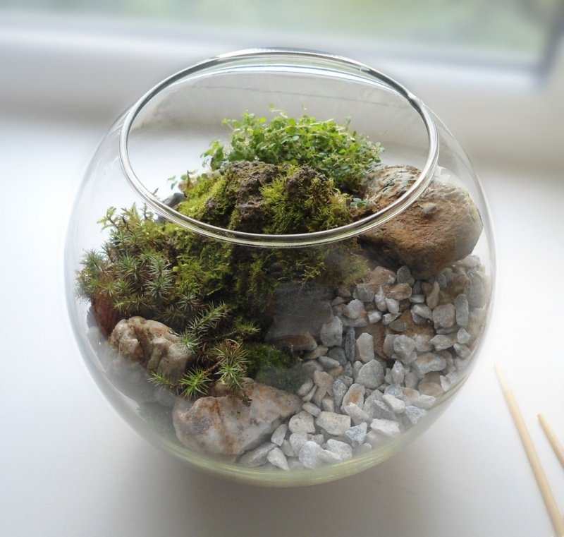 Создать особенный интерьер в квартире или доме помогут миниатюрные садики за стеклом. Частичка природы, внесенная в обыденную обстановку, наполнит помещение яркими натуральными красками. Сделать флорариум своими руками очень просто, достаточно пошагово выполнять инструкцию. Творческий процесс требует терпения, небольших финансовых и временных затрат, зато выглядит гораздо эффектнее обычных цветов в горшках.